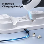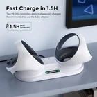 This PSVR2 Charging Station is designed with safety features such as overvoltage, short circuit, under voltage to prevent any damage to your controllers. Size of 25*12.5*5.7cm and a mounting type of tabletop. PS VR2 Charging Station Sense Controller Dock, compatible with PS VR2 W/ LED Indicator. Fast charging and simultaneous charging of up to 2 controllers with this organized and convenient charging station. The magnetic and ambient light ring features make it easy to insert and remove controllers, while the USB Type C connector ensures a stable and reliable connection.