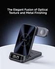 Fast Charging for Apple Watch - For Apple Watch 7 and later models, 708A delivers 5W of output power, fully charging an Watch 10 in just 1.38 hours—32% faster than a 2.5W charger Elegant Curved Display - Our charger features elegant curved corners, with the display continuing the curved design for enhanced aesthetic appeal. Its digital clock offers three brightness settings and the option to turn off completely for a personalized experience Upgraded Appearance Process - The 708A features a phone charging panel crafted with UV transfer printing technology. The glossy charging panel, combined with a metallic-coated body, elevates the product's visual and tactile appeal Rotatable Watch Charger - Supports both vertical and horizontal charging for your watch, allowing you to choose the charging position that best suits your habits and usage scenarios Perfect for Travel - When traveling, all you need is a 708A, a charging cable (included), and a charging brick (not included) to charge three devices. When folded, the charger takes up minimal space in your suitcase Broad Compatibility - Compatible with iPhones, AirPods, and other wireless-charging-enabled phones and earbuds. The watch charging section is specifically designed for Apple Watch and is not suitable for other brands of watches