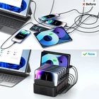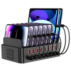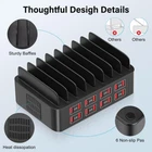 【150W Fast Charging】The multiple device charging station has 16 USB fast charging ports, each of which outputs up to 2.4A current for a total output of 150W. Charge your Android and iOS devices to 100% in an hour, keeping you productive throughout the day. 【Intelligent Charging】Our usb charging station for multiple devices has the function of automatically detecting and adjusting the output power, so that the electronic device is fully charged in the shortest time within the receiving current range. With a vertical stand, it can hold up to eight tablets or phones. Free up your power outlet by charging multiple USB devices at the same time. 【Safe charging】This usb charger station is made of fireproof material with multiple protection technologies to prevent over-voltage, over-current, overload and short-circuit, two Heat sinks to effectively protect your device, and the bottom is equipped with non-slip pads to keep the charging station from moving around. 【Universal Compatibility】Compatible with iPhone and Android phones, iPad, headphones, kindle, etc. Can be used in homes, offices, schools, restaurants, hotel lobbies. Ideal for parties, group Tours and live streaming. 【Great Gift]】Will get a 16-port USB charging station, detachable power cord, instruction manual and 24-hour fast response customer service (no charging cable in package), making this the perfect gift for the organizing enthusiast.