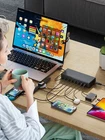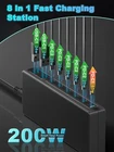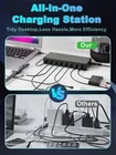 Powerful 20W PD USB-C ports: 20W PD USB-C charging station deliver fast charging speeds, can be charge phones up to 50% in about 30 minutes, 3 times faster than the original 5V/1A charger, ensuring your devices are powered up in no time. Now more and more phone are no longer include charger, so our fast charging station is a great option for quick charging multiple devices. 8 in 1 Charging Stations: 8 ports Charging Station designed with USB-C Port 65W for MacBook Pro / Air, conveniently store and charging for any devices combination. No more cluttered cables & do not need to plug a bunch of wall chargers on your power outlet, keeps your table clean and freed up outlets in your home and office. Perfect for families or anyone who needs to charge multiple devices at once. Multiple Safe and intelligent: The charger station is made of ABS flame-retardant material, equipped with upgraded charging protection system. With over-charge, over-current, over-voltage, over-temperature, short circuit, intelligent adjustment of power output, a combination of 6 safety functions to ensure that your equipment is in the process of 24H efficient and fast charging. Widely Compatibility: Compatible with iPhone, iPad, Samsung Galaxy, cell phones, tablets, cameras, eReaders, bluetooth speaker headsets, power bank, MP3 /MP4 player, drones and more. Ideal multi port USB charger station for your multiple usb-powered devices. Compact Design: USB charging station adopt compact design. Keep all devices in one place and make desktop space saving. What You Get: 1- 8 Ports Charging Station, 1- Power Cord.