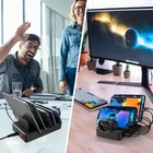 【Wide Compatibility Charger Station】Our Device Charging Station comes with 6 cables and an apple watch charger holder (watch charging cable is not included), and a Type-A to Type-C Adapter Converter (use for Apple Watch Series). Perfectly compatible with all your electronic devices and no need to buy extra cables 【6 IN 1 Multiple Charging Station】The Charging Station For Multiple Devices has 6 smart USB ports that will simultaneously charge your smartphone, apple watch, iPad, Kindle, and other devices, keeping your desk neatly organized and saving more space. Besides, our Phone Charging Station each 2.4A port charges 80% faster than other regular chargers of 2A or less 【Safety & Multi-Protection】CREATIVE DESIGN Apple Charging Station will keep all your devices for safer, more efficient charging, as well as short circuits, overheating, and overcharge protection. And each of the six slots of the Multi Charging Station has a silicone pad to protect devices from scratches and to prevent them from sliding around 【Convenient Durable Sturdy】Our Ipad Charging Station is made of premium flame retardant ABS material. Every 1-inch wide slot and 1.3-inch high divider are wide and sturdy enough to place a large tablet with a thick case to make sure all of your devices can be powered up 【Suitable for Any Occasion】Designed in a compact size, the Charging Dock is portable to carry. Measuring 7.08 x 4.33 x 1.37 inches, our Multi Charger Station has a 4.92 feet power cable to place the unit wherever you'd like. It can be used in the bedroom, living room, kitchen counter, office, conference room, hotel, and more. Ideal Gift to colleagues, friends, and family 【Charging Cables Replacement Service】For a better experience, we recommend using the charging cables that come with our products. If you have any problems with them, please feel free to contact us and we are willing to replace the charging cables for you Product Description All In One Place Convenience The CREATIVE DESIGN 6-Port Charging Station is ideal if you have multiple devices with different charging solutions. It features 3 lightning cables, 2 type-c cables, and 1 micro USB cable, so you won't need extra adapters to charge newer devices. This ipad charging station measures 7.08 x 4.33 x 1.37 inches and has vertical storage slots to save desktop space and reduce clutter. Each of the six slots has a silicone pad to protect devices from scratches and to prevent them from sliding around. And the anti-slip rubber base helps keep the charger in place and prevents it from damaging your desk. The cell phone charging station can be a powerful and convenient tool for any space! Whether you’re looking to organize your nightstand, workspace, or shared family space, our charging station for multiple devices makes sure every device can power up at the same time! Charging Cables Replacement Service : For a better experience, we recommend using the charging cables that come with our products. If you have any problems with them, please feel free to tell us and we are willing to replace the charging cables for you. Note: Our product is not compatible with Switch.