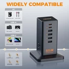 Return Policy Fast Delivery Trusted seller Charging Station for Multiple Devices 65W, 6 USB Fast GaN Charger Station for iphone 14/15, Macbook, Tablet, Type C Desktop Charger with 3 Outlets, Home Travel Office Accessories Product Description Space Saving Helper: Vertical design charging station takes up little space on your desk and provide 9 charging port for your iphone 14/15, Macbook, ipad and other devices, creating a neat and tidy desk space for home and office Smaller Size: Palm size design USB charging station smaller than a cellphone, makes it easier fit in handbag, backpack; A good companion for your travel, cruise ship and business trip GaN Ttechnology: charging station for multiple devices built-in GaN chip, charging 4 times faster than ordinary plug, featuring dynamic temperature sensors allows your mobile phone to charge for 10 hours without getting hot, reducing your devices loss Phone Fast Charger 65W : With GaN chip combined, the USB C port provide optimal charging speed for your devices, charge your phone from 0% to 80% in 30mins, increase your efficiency and save your time One for All: This iphone fast charging station rated 1250W, could turn 1 socket into 6 USB ports and 3 outlets, meet your various charging needs for cellphone, laptop, tablet, earphone, smart watch, computer, etc Shipping Returns Payment Shipping Shipping is FREE to all addresses other than APO/PO boxes in the lower 48 states. All our stock ships from US-based warehouses. Shipped via USPS or UPS (depending on location and package weight) Unless stated otherwise, all orders will ship within 24-72 hours of your payment being processed. Check our feedback to see the great reviews of FAST shipping we offer. Returns Seller does not accept returns Payment We currently accept payment via eBay managed payments only. Once payment is cleared, we will dispatch your shipment within 1-3 business days. Please refer to the "Shipping" tab for more information regarding shipping speed to your destination.