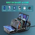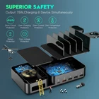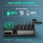 【7 in 1 Charging Stations】Multiple devices charging station designed with 10W wireless charging pad and 5 fast charging ports ,It contains earbuds and iWatch Holder (PLEASE NOTE: the Watch charger is not included) conveniently store and charging for any 6 devices combination simultaneously. By one wireless USB charger station, No more cluttered cables & do not need to plug a bunch of wall chargers on your power outlet,keeps your table nice and clean.and freed up outlets in your home and office. 【20W PD USB-C and 18W QC 3.0 Fast Charging】Fast Charging Station with 1 PD USB-C and 1 QC 3.0 Fast Charging ports.20W PD ports Charge iPhone 13 &12 series and previous models up to 3× faster than with original 5W Charger.QC 3.0 Rapidly charge your QC 3.0 compatible devices from 0% to 80% in 35 minutes, 50% faster than traditional chargers. Backward compatible with Quick Charger 2.0.deliver the fastest possible charge to more device. 【7 Mixed Cables Included & Compact Design】The cell phone charging station Comes with 1 usb-c to iphone cables, 1 usb-c to usb-c cable, 2 usb-a to lphone cables, 2 usb-a to micro cable, 1 usb-a to usb-c cable. There is no need to buy extra cable for you devices. USB charging station adopt compact design,keep all devices in one place.make sure it won't take up too much desktop space. 【Removable Baffle Design】5 ports Charging Station adopts stronger baffles,It contains 5 removable baffles and 1 removable alrpod and iWatch charger holder. Detachable Design and base can be effortlessly separated. Just choose which baffles need then you have enough space to fiddle with your devices,and can be save space,easy to carry on the go. you can turn it off by power button off if do not use this charging station.Suitable for home use on kitchen counter, desk, nightstand or office, hotel. 【Multiple Security Protection】: multi usb Charging Dock with over charging,over-current , over-temperature and short-circuit protection ensure complete safety for you and your device.This charging station for multiple devices are manufactured under strict quality standards to offer our customers best experience.