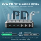 【3 powerful 20W PD USB-C Fast Charging 】: Boasts 3 powerful 20W PD USB-C ports is an standout feature of this USB C charging station,deliver lightning-fast charging speeds for fast charging up to 3 devices simultaneously,can be charge phones up to 50% in about 30 minutes, 3 times faster than the original 5v/1A charger,ensuring that your devices are powered up in no time. NOW more and more phone are no longer include charger, so our fast charging station is a great option for quick charging multiple devices! 【7 in 1 Charging Stations】: 6 ports Charging Station designed with 3 20W PD USB-C charging ports and 3 USB-A ports,conveniently store and charging for any 6 devices combination. By one 6 port USB charger station, No more cluttered cables & do not need to plug a bunch of wall chargers on your power outlet,keeps your table nice and clean.and freed up outlets in your home and office.perfect for families or anyone who needs to charge multiple devices at once. 【7 Mixed Cables Included & Compact Design】The cell phone charging station Comes with 7 Mixed 10 inch Cables Include 1 usb-c to iphone cables, 3 usb-c to usb-c cable, 1 usb-a to lphone cables, 1 usb-c to lphone cables,1 usb-a to micro cable, 1 usb-a to usb-c cable. There is no need to buy extra cable for you devices. USB charging station adopt compact design,keep all devices in one place.make sure it won't take up too much desktop space. 【Multiple Safe and intelligent】 multi usb charger station built in advanced intelligent chip that protects against with over charging,over current,over temperature and short circuit protection.Every port of the charging stations will offer exactly the charging current required to match your devices needs, keeping your phones safe. The phone charging station features a switch and indicator light giving you a quick visual indication that it is powered on. 【Large Space,Removable Baffle Design 】 This Multiple devices charging station is equipped with 7 PCS removable high-hardness dividers,The distance between the dividers is 0.7 inches.Detachable Design and base can be effortlessly separated. Just choose which baffles need then you have enough space to fiddle with your devices,and can be save space,easy to carry on the go. you can turn it off by power button off if do not use this charging station.