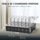 Charging Station for Multiple Devices,75W 6 Port USB C Fast Charger Station w...