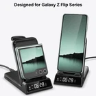 Charging Station for Samsung Z Flip, SwanScout 703F, Wireless Charger for Sam... About this item: 3-IN-1 Charging Station for Z Flip - The phone charging area is specially designed for Samsung Galaxy Z Flip 6/Z Flip 5/Z Flip 4/Z Flip 3. The watch charging area is compatible with Galaxy Watch Ultra/7/6 Classic/6/5 Pro/5/4 Classic/4/3/Active 2/Active. The earbuds charging area is compatible with Galaxy Buds 3 Pro/3/2 Pro/2/Pro, and other earbuds with wireless charging case. Great for Travel - SwanScout 703F can fold pretty flat, when folded, it's fairly small and can easily be stored in a travel bag or in a drawer. When unfolded, the phone charging area can be adjusted to any angle between 0-70°, and stands firm enough to hold your phone up Additional Digital Clock Function - The built-in digital clock at the bottom can be set to either a 12-hour or 24-hour format. You can also adjust the brightness of the clock display or turn it off as needed, making it a sleep-friendly design for you One-Press Charging Control - The SwanScout 703F features a button to easily stop phone charging when your phone is fully charged. Simply press the button to stop charging and turn the station into a regular phone holder. Press it again to resume charging