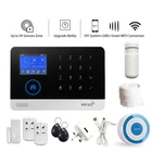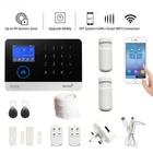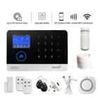 【Product Description】 This WiFi / GSM alarm system supports several alarm functions for various dangerous situations: fire, theft, GAS leakage, Breaking-in robbery. Alarm systems work for wired detectors and wireless detectors, these complete settings are widely used for homes, shops, accountants, villas, and residential communities. 【Note】 The panel can use wifi or SIM card which supports GSM. The wifi connection system only supports 2.4 GHz wireless Internet access does not support 5 GHz. If using a 3G / 4G SIM card make sure your provider's 2g network service is still available in your country. 【Product Function】 WiFi/GSM network automatic time calibration Max 99 wireless accessories (wireless accessories include a sensor, detector, remote and so on) Supports 5 alarm group telephone number settings Multi-channel alarm code Center for remote control Multi-language support function Recording function Low power support for the wireless, tamper alarm function Application: download the application from Google Play or Apple Store (APP: Tuya APP and Smart Life APP) [List-KIT1 Package] 1 * Panel 1 * USB with cable power adapter (UK plug) 1 * Wireless door sensor 1 * Wireless PIR motion detectors 2 * Wireless remote control 1 * Wired Siren 2 * RFID Card [List-KIT2 Package] 1 * Panel 1 * USB with cable power adapter (UK plug) 2 * Wireless door sensor 2 * Wireless PIR motion detectors 2 * Wireless remote control 1 * Wired Siren 2 * RFID Card [List-KIT3 Package] 1 * Panel 1 * USB with cable power adapter (UK plug) 5 * Wireless door sensor 2 * Wireless PIR motion detectors 3 * Wireless remote control 1 * Wired Siren 2 * RFID Card [List-KIT4 Package] 1 * Panel 1 * USB with cable power adapter (UK plug) 10 * Wireless door sensor 2 * Wireless PIR motion detectors 3 * Wireless remote control 1 * Wired Siren 2 * RFID Card [List-KIT5 Package] 1 * Panel 1 * USB with cable power adapter (UK plug) 1 * Wireless door sensor 1 * Wireless PIR motion detectors 1 * wireless smoke detector 2 * Wireless remote control 1 * Wired Siren 2 * RFID Card 【Q&A】 Q1: What is RFID Card? How to use it? A1: RFID Card is the black 2pcs beside the panel in the main pic. let the RFID Card touches the RFID area of the panel, it can arm or disarm. Q2: How far between the host and accosseries? It is about 20-25m, if you want to use for longer distance, pls add a repeater to extend the signal transmission distance.