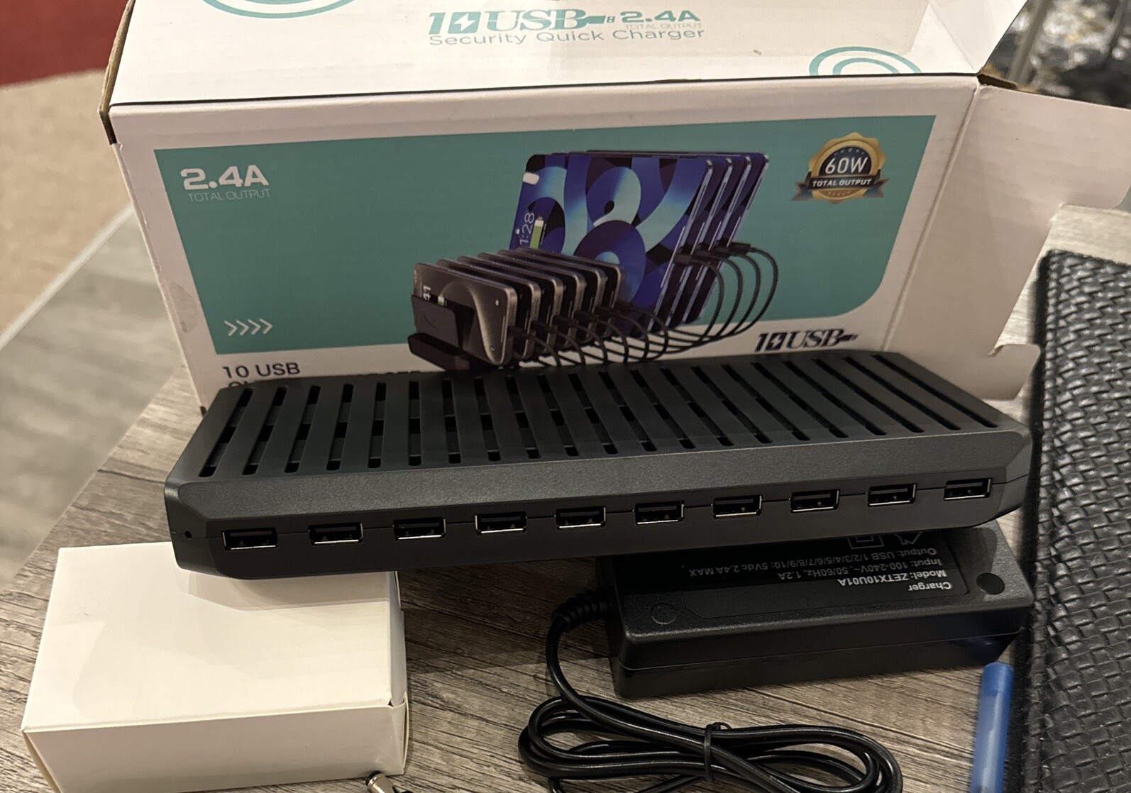 BRAND NEW IN BOX Charging Station for Multiple Devices, Cinlinso 60W 10 Port USB Fast Charging Station with Adjustable Dividers, Compatible with iPhone, iPad, Tablets and Cell Phone (Black) 10 Port USB Charging Station with the newest technology, The total output power is 60W, Providing support for 5V/2.4A fast charging for devices. The 10-in-1 charger docking Organizer can automatically detect the connected devices to adjust the corresponding current output to minimize the charging time for your phone. TRUSTED SELLER & QUICK TO SHIP