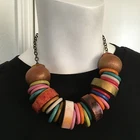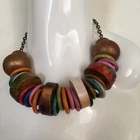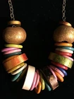 Main Stone:NoneColor:Multi-ColorSecondary Stone:n/aGender:FemaleBrand:UnbrandedLength (inches):16-18"Material:Wood, Metal and ResinMain Stone Treatment:N/AType:NecklaceSeller Notes:“Vintage pre-owned condition is very good.”Main Stone Creation:No StonesMetal:NoneTheme:BoHoFeatures:AdjustablePendant/Locket Type:N/ACountry/Region of Manufacture:UnknownStyle:Colorful Bohemian ChicPendant Shape:N/A