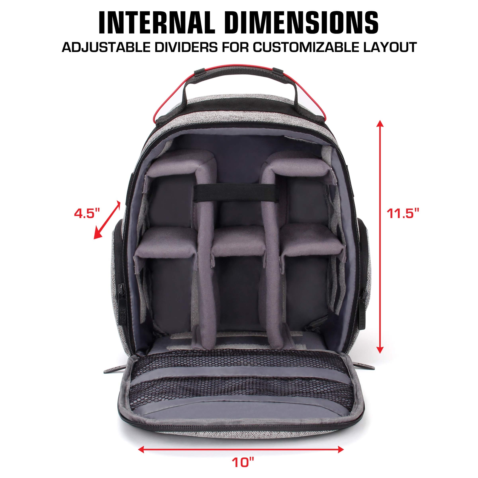 Backpack for DJI Mavic Backpack 's compact drone Mavic Pro Backpack is the essential portable storage for your small to medium sized drone , such as the DJI Mavic Pro , Spark Mini , Yuneec Breeze & More. Featuring a weather resistant base , customizable interior storage , padded / scratch resistant lining , and an accessory netting , the choice is clear with . The interior features removable dividers that can be arranged in whatever way you want. This allows for the creation of unique and personalized compartments to store your favorite accessories such as batteries , spare blades , controllers , charging cables , and much more. The backpack features a padded interior to protect your drone from minor drops , bumps , scratches and dings. The water resistant base protects your backpack and its contents from moisture when being placed on the ground outdoors. The accessory netting on the opening side of the bag is perfect for keeping documents , flight logs , drone certifications , cables , manuals , and whatever accessory you deem neccessary. The Choice is clear. . COMPACT DESIGN WITH CLEVER STORAGE: Security straps to hold down your drone, adapters, and accessories in an easy to carry travel bag || Interior Dimensions: 11.5 x 10 x 4.5 inches CUSTOMIZABLE INTERIOR DIVIDERS: Removable dividers can be arranged to create custom compartments and pockets for various sized lenses, spare blades, batteries, controllers and much more WATER RESISTANT BASE LINING: The bottom is lined with a water-resistant material that protects your drone and accessories from moisture when placing down on wet surfaces PADDED SCRATCH RESISTANT INTERIOR: Premium soft lining and plush padding keeps your small or medium sized drone safe from abrasive damage during travel INTERIOR DIMENSIONS: 11.5 x 10 x 4.5 inches || **CASE ONLY**