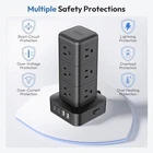 Menu 1. We require immediate payment. 2. We currently accept payment via eBay managed payments only. 3. Once payment is cleared, we will dispatch your shipment within 1-3 business days. Please refer to the "Shipping" tab for more information regarding shipping speed to your destination. Compact Surge Protector Power Strip Tower, 1080J Surge Protector Tower, 12 AC Outlets 4 USB(2 USB C), 13A/1625W Overload Protection, 5ft Extension Cord Tower Power Strip for Office Home Dorm Product description 【 Compact Power Strip Tower 】 vertical power strip tower adopts a compact size design ( 2.17 inches × 2.17 inches × 6.50inches ) and is half the size of a traditional tower power strip. This tower power strip also includes two hanging holes on the bottom, allowing for easy installation under your desk. This surge protector power strip tower helps you save more desktop space and makes your desktop tidy. 【 16 in 1 Power Strip Tower 】 This tower power strip adopts 4-sided and vertical tower designs with 12 AC outlets and 4 USB ports (2 USB C) charging ports. So this standing power strip tower can power up to 16 electronic devices simultaneously without blocking, keeping your desktop organized. Compact power outlet tower must-have accessories for the college dorm rooms, homes, office supplies, etc. 【 Surge Protection and Overload Protection 】 The 1080 Joules surge protector tower is equipped with overload protection, short-circuit protection, and over-current protection. This tower surge protector will automatically cut power to protect your expensive devices when a voltage surge is detected. In the event of power overload (Rated Power: 1625W), the reliable Double-Break safety switch will trip off automatically to protect your devices and your home. 【 Power Strip Tower with USB C Ports 】 The Power surge tower with each USB A port features a 2.4A Max output; Each USB C charging port features a 3.1A Max. Built-in smart technology detects charging devices and delivers optimal charging speed automatically, compatible with most USB devices. 2 types of USB ports are compatible with all cell phones, tablets, earphones, etc. 【 More Space Saving Design 】 ①Flat Plug: The surge protector power tower with only 0.55in flat plug design, It can fit in tight spots behind furnitures, such as bed, nighstand, couch, or TV stand. ②Widely Spaced: Each outlet is 1.67 inches apart, allowing large adapters to be plugged in. ③Steady Base: The steady base with 4 anti-slip mats on the bottom avoids(prevents)the surge protector power tower from wobbling and slipping around. PLEASE MESSAGE US IF YOU HAVE ANY OTHER QUESTIONS, AND MANY THANKS FOR READING ALL OF THIS. Copyright ©#. All Rights Reserved.
