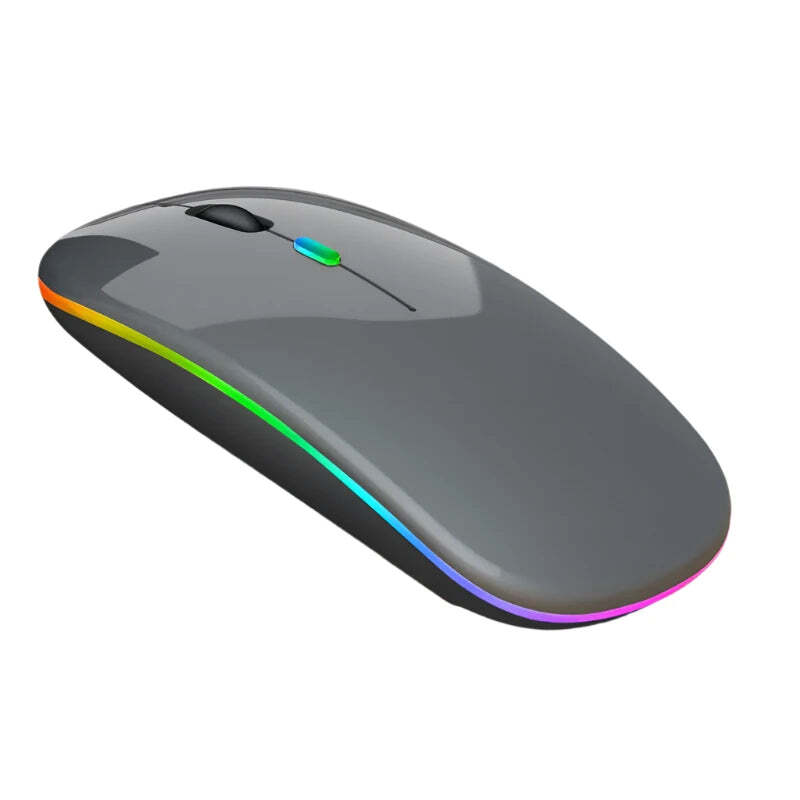 Wireless Mouse For Laptop PC Wireless Mouse for Laptop PC - Bluetooth RGB, Rechargeable, and Silent Enhance your computing experience with the Wireless Mouse for Laptop PC , a versatile and stylish mouse designed for both work and play. With Bluetooth 5.1 technology, RGB LED backlighting, and an ergonomic design, this mouse is perfect for gamers, students, and professionals alike. Key Features: Bluetooth 5.1 Connectivity : Enjoy a stable and fast connection with the latest Bluetooth 5.1 technology, compatible with most laptops and PCs. Rechargeable Battery : No more worrying about replacing batteries. This mouse comes with a built-in rechargeable battery, providing long-lasting power for uninterrupted use. Silent Clicks : Designed with silent buttons, this mouse ensures a quiet working environment, making it perfect for use in shared spaces or during late-night gaming sessions. RGB LED Backlit : Customize your gaming setup with dynamic RGB lighting that enhances the aesthetic appeal of your workspace. The LED backlighting offers various color modes to suit your style. Ergonomic Design : The mouse features a comfortable, ergonomic shape that reduces strain during prolonged use, making it ideal for both gaming and office tasks. Versatile Use : Whether you're a gamer, a student, or a professional, this mouse adapts to your needs with precise tracking and responsive controls. Specifications: Connectivity : Bluetooth 5.1 Battery : Rechargeable Lighting : RGB LED Backlit Design : Ergonomic and silent Compatibility : Laptop, PC, and other Bluetooth-enabled devices Why Choose This Wireless Mouse? The Wireless Mouse for Laptop PC offers a perfect blend of style, performance, and convenience. Its Bluetooth 5.1 connectivity ensures seamless operation, while the RGB lighting adds a vibrant touch to your setup. With silent clicks and an ergonomic design, this mouse is tailored for extended use, making it an excellent choice for anyone looking to upgrade their computing experience.