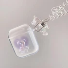 Compatible for AirPods Case Soft Clear TPU with Cute 3D Bear Design Headphone case Shockproof Crystal Bear Keychain Cover for Girls Woman for Airpods 2 &1-Purple ��Compatible for�This case compatible with Airpods 2018 and New Airpods 2019.,��Case to AirPods is 1: 1�When we produce earphone cases, we use real AirPods as models, so the ratio of the case to AirPods is 1: 1.This makes it easy to assemble and disassemble the headphone case.,���Exterior design�Cute and transparent bear design, simple, fashionable and cute.,��Easy to use�Because the button of AirPods needs to be pressed once after booting, No need to use push button switch when used normally,So we removed the hole of the button switch when designing.But it does not affect the normal use of normal,as long as you open the lid when you use it,it will automatically connect to your phone.,��High-quality materials�High quality Silica gel material protects your AirPods from damage when dropped, not scratched by other items.Unique lanyard design makes your AirPods more distinctive. Product Description DesignCute crystal bear design protective case, simple and lovelyWith mountaineering buckle, you can facilitate your ordinary travel.Note:These computer shock-proof charging covers with a reserved charging port allow you to use all the features of the AirPods charging box. It will be covered when not charging, which will have a dustproof effectNote:Due to the difference in the display screen, the photo may have a slight color difference with the actual Airpods case.Product SpecificationsMaterial:Silica gel Weight: 20gPackage included:1 *AirPods case .
