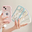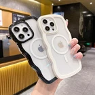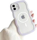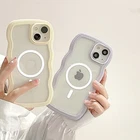 Compatible for Clear iPhone 13 Pro Max Case with Magnetic Fitting for Magsafe Case Cute Curly Wave Aesthetic Bumper Phone Case for Girls Women TPU Protective Cover-White ✔【Compatible with iPhone 13 Pro Max】Specially Designed ONLY for iPhone 13 Pro Max. Support wireless charging.,✔【Magnetic suction built-in design】 It can help you solve the problem of incorrect charging position, effectively preventing deviation and not affecting your daily use of your phone.,❤【Exterior design】The frame is colored and the back is transparent,,(Please note that the colored bumper can be torn down.) you can use it with your favorite photos, and it can also reflect the beauty of the original machine.,✔【Protection Design】Ultra-light but durable TPU,provides full protection,corner design protect your camera.Fingerprint-resistant & smooth touch feeling, easy installation and removal.,✔【Precision cutting】Precise cut, quick access button, easy access to the charging port, headphone jack, volume buttons and silent button, perfect fit for your phone.