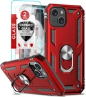 Compatible for iPhone 15 Plus Phone Case: Phone Case with [2 Pack] Tempered Glass Screen Protector, Military-Grade Case with Kickstand Ring for iPhone 15 Plus 6.7 inch, Red iPhone 15 Plus 6.7