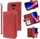 Compatible with LG V35 ThinQ V30 Plus Wallet Case Wrist Strap Lanyard Leather Flip Card Holder Stand Cell Accessories Phone Cover for LGV30 LGV35 LG30 LG35 V 30 35 V30+ V30s H931 Men Purple