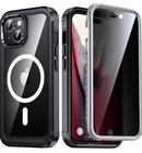 Compatible with iPhone 15 Case, [Built-in Privacy Screen Protector] Support Magnetic Accessories, Military Grade Shockproof Clear Back Magnetic Anti-Spy Case for iPhone 15 - Black Clear #B8L