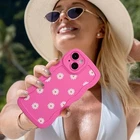 Compatible with iPhone 15 Case,Unique Curly Wave Frame with Daisy Pattern,Soft Liquid Silicone Anti-Fingerprint Shockproof Full Coverage&Lens Protective Case for iPhone 15-Pink Unique Design: The back of this phone case is printed with a beautiful daisy pattern, the phone case border is not the past straight edge or round edge border, but using the curly wave border, which makes your phone more stylish,Easier to Hold: The left and right sides of the phone case are curly wave edge, and the wavy grooves fit perfectly with your fingers, making your phone less likely to slip out of your hand. The curly wave edge phone case frame makes this phone case in addition to being more unique, it also has a good anti-slip function,Camera Protection: In order to better protect your phone, this phone case also specially adopts the lens all-inclusive design, not only will not block the lens or flash, but also protect your phone lens,Anti-fingerprint: This phone case is made of soft rubber material, and it is not bright but also not as rough as the frosted phone case. Proper damping gives you a better experience. And this material has a good anti-fingerprint function,Perfect Fit: This case is designed specifically for iPhone 15. With precise cut, quick access so button, easy access to the charging port, headphone jack, volume buttons and silent button, perfect fit for iPhone 15