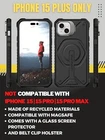 Return Policy Fast Delivery Trusted seller Compatible with iPhone 15 Plus Protective Case - Compatible with MagSafe, Slim Yet Rugged with Tempered Glass Screen Protector, includes Kickstand & Belt-Clip Holster - Black Product Description Only Compatible with iPhone 15 Plus - Included with this case are a tempered glass screen protector, a detachable swiveling belt clip holster, and a built-in kickstand. Full-body wrap 5-layer construction - Experience unbeatable durability and protection with our product, which exceeds 4X MIL-STD 810G-516.6 drop tests with up to 21 feet drop protection. Compatible with MagSafe and Most Other Wireless Chargers - This case also seamlessly works with MagSafe car mounts, making navigation more convenient while driving. Committed to Environmental Sustainability - Our case is made from recycled materials, demonstrating our commitment to reducing environmental impact. Texas Toughness with a Lifetime - Trust in our commitment to durability and enjoy the peace of mind that comes with the ultimate protection for your phone. Shipping Returns Payment Shipping Shipping is FREE to all addresses other than APO/PO boxes in the lower 48 states. All our stock ships from US-based warehouses. Shipped via USPS or UPS (depending on location and package weight) Unless stated otherwise, all orders will ship within 24-72 hours of your payment being processed. Check our feedback to see the great reviews of FAST shipping we offer. Returns Seller does not accept returns Payment We currently accept payment via eBay managed payments only. Once payment is cleared, we will dispatch your shipment within 1-3 business days. Please refer to the "Shipping" tab for more information regarding shipping speed to your destination.