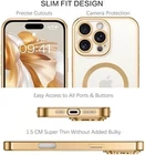 Compatible with iPhone 16 Pro Max Case, Phone Case iPhone 16 Pro Max with MagSafe, Clear Magnetic Plated Slim Thin Shockproof Soft TPU Electroplated Bumper Protective Cover, Gold �Compatible with iPhone 16 Pro Max 6.9"�This Magnetic phone case specially designed for iPhone 16 Pro Max 6.9 inch 2024 New Release Only. Please confirm your phone model before buying this iPhone 16 Pro Max 6.9" phone case. ���� Please contact our service team timely if you got any defective item. We will solve the problem for you sincerely�Your satisfaction is our goal.,�Compatible with MagSafe Accessories�This iPhone 16 Pro Max Phone Case, with a built-in magnetic ring that aligns perfectly with MagSafe chargers and other Qi-certified chargers, offers a strong attach experience and faster wireless charging. This iPhone 16 Pro Max Case can be firmly attached to all MagSafe accessories like MagSafe charger, wallet, battery pack, car mount. However, it can't stick to metal surfaces like fridges, steel, etc.,�Reasonable Full Body Protection�The iPhone 16 Pro Max Case is SGS&ROHS certified military-grade drop protection. On the inside edges, it has exclusive Shock 360� airbags and strong rubber bumpers on the outside edges for shock absorption if dropped on a hard surface. The internal air pad corners as bumpers are rounded and bubble out safely, giving extra room against corner shattering. What's more, there is a 3mm raised screen lip and a 3mm raised camera bezel to prevent scratches.,�Slim, Pleasantly Velvety Grip�iPhone 16 Pro Max Cover is easy to put into and remove from the front pockets of your jeans with no catching or slipping. The strong rubber edges add a pleasant dimpled grip texture and girth to help you to hold it reliably and to keep it comfortable and grippy enough for confident one-handed use. Any problems, please don't open the chat window and let us help you.,�Considerate Cutouts & Exquisite Tactile Buttons�Phone Case for iPhone 16 Pro Max has a decent amount of lip which maximizes the protection of your lens from wear and tear and maintains the uniform color of your lens and the phone case. Accurate and precise ports allow easy access to all the functions of your phone. The tactile buttons covers bring you great responsive touch experience and marries up to the volume controls, port, and camera perfectly. Product Description BENTOBEN case designed in Italy, all products are manufactured with premium materials in a continuous effort to produce high quality products that are protective and simple.Compatible Phone Model�� 6.9 inch iPhone 16 Pro Max 2024 Released(Not Compatible with Other Phone Models)Updated & Stylish Design�� Love the feeling of a case free phone in your hands? This updated slim case fits the bill. It�s simple, thin and light, add no bulky to your iPhone 16 Pro Max.�� It�s iPhone 16 Pro Max plating cover is smooth with a smooth touch, and it doesn't catch on the fabric of clothes or handbags, keeping a nice looking for your phone.Compatible with MagSafe Accessories�� iPhone 16 Pro Max Phone Case with a built-in magnetic ring that aligns perfectly with MagSafe chargers and other Qi-certified chargers, offers a strong attach experience and faster wireless charging.�� This 16 Pro Max Phone Case can be firmly attached to all MagSafe accessories like MagSafe charger, wallet, battery pack, car mount.Humanized Design�� Being frustrated by endless dusts on the clear case? This compact design case doesn't pick up dusts easily, giving you a neat touch and clean grip.�� A decent amount of lip which maximizes the protection of your lens from wear and tear. The tactile buttons covers bring you great responsive touch experience and marries up to the volume controls, port, and camera perfectly.Packaged: 1 X Case for iPhone 16 Pro Max 6.9" 2024 (Phone and screen protector not included)