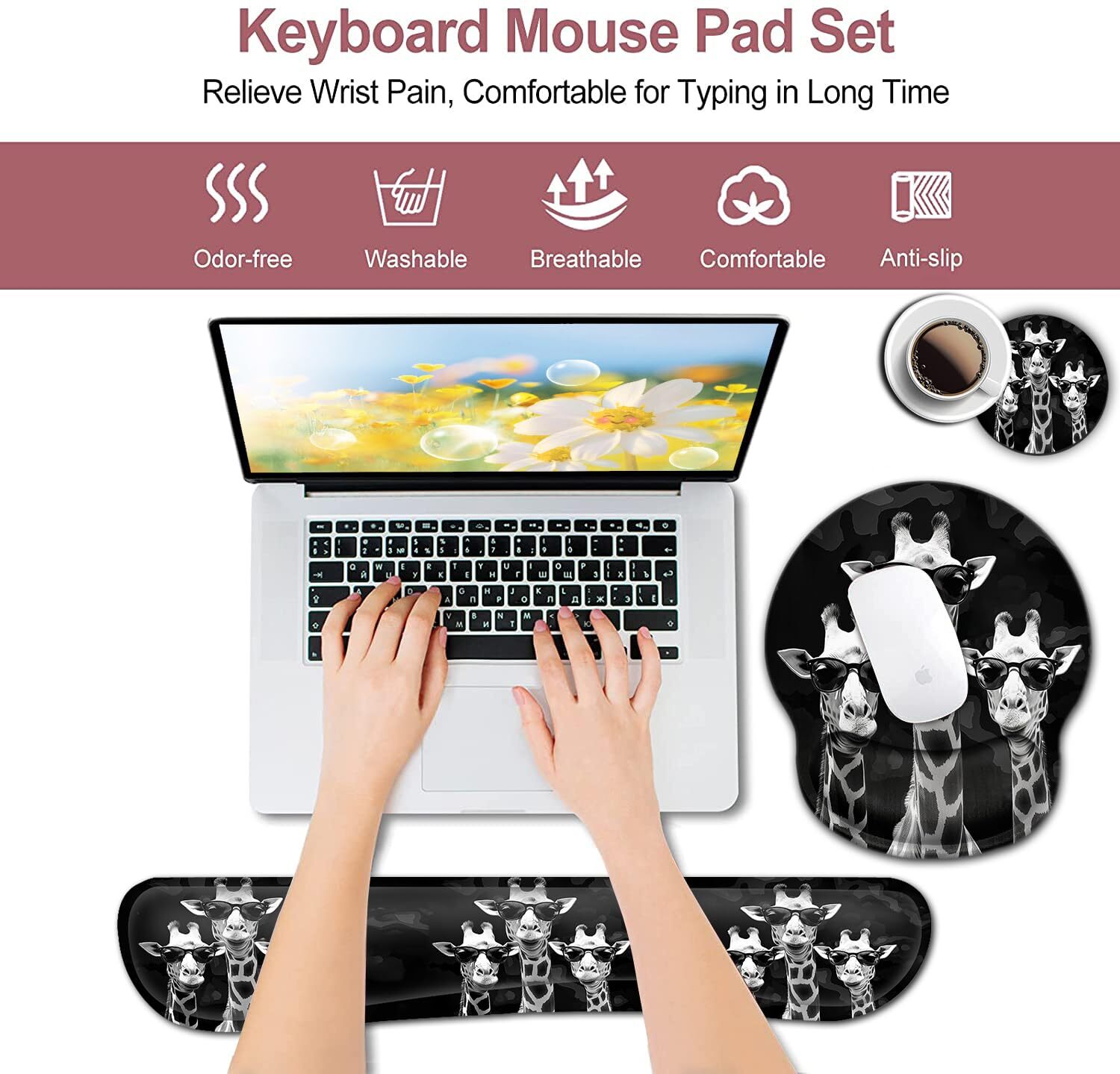 Large Memory Foam Keyboard and Mouse Wrist Rest Pad for Computer Support (4-in-1)