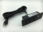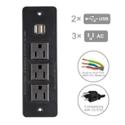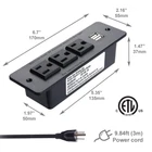 Specification: Item Size:6 1/4" X 2" X 1 9/16" (inner hole size) 6 6/8" X 2 1/8" (Surface Size) AC Outlets: 3AC surge outlets USB Ports: 2 ports Input: 125V/60Hz Rated Power: 1500W (125V 12A) USB Charger: 5V 2.1A Please Note: This item is built for furniture, provide people power source within reach. Widely used in hotel/office/home etc. It can be easily installed into desk/closet/cabinet/counter or anywhere you have an ideal on it. Install detail: 1. Make sure there is enough space before you cut a hole for it. 2. Cut a hole size about 6 1/4" X 2" X 1 9/16" 3. Place this devices into that hole. 4. Screw it tight 4. Connect power cord with power source. 5. Finish! Attention: This item for indoor use only. [RECESSED MOUNTABLE POWER GROMMET] Easy to mounted in any desk table cabinet or sofa,save your space and make your place clear no any power cord dragged and wound in mess [FUNCTIONAL POWER STRIP WITH USB] 3 power outlets + 2 USB ports so you can charge multiple devices together. [SMART POWER STRIP WITH USB] the usb outlets with smart ID that can recognize and charger your devices according its capacity. Max Charges goes up to 5V 2.1A. [SAFETY GUARANTEED POWER STRIP] Built-in Anti-Fire ABS+PC Material, the quality and performance complying with ETL Certification. [1 YEARS ] We offer 1 year for after sale services. Any problem you have during assemble or using, welcome to us freely.