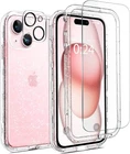 Coolwee Full Body Protective Hybrid 3 in 1 Rugged for iPhone 15 Glitter Case| 6.1 inch| Heavy Duty Transparent Shockproof for Women Girls with Camera & Screen Protector| Shiny Clear Bling Sparkle