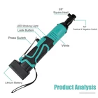 42V 3/8"&1/4" Electric Cordless Ratchet Wrench 60 ft-lbs with 7 Socket+2 Battery Item Description 42V Cordless Ratchet Wrench Set Features Powerful Motor: 90N.m large torque system, 260RPM speed, powerful power and effective protection against machine damage caused by excessive motor temperature. Extension Bars and Adapters: We provide 1 Extension bar in Package and 1 extra-adapters (3/8" to 1/4")for sockets of other sizes. Premium Chrome Vanadium Steel tempered with our proprietary heat treatment process to withstand more torque. Extra-adapter allowed more sockets, offering a wide variety of socket extenders providing a solution for stubborn hard to access fasteners. R/F Positive and Negative Design: R/F positive and negative design, easy to disassemble. 2 Pack 7800mAh Large Capacity Battery: Large capacity lith ium battery, easy charging and long battery life. 3/8'' Square Head: 3/8 manganese steel spindle. The metal balls are accurately clamped, and the sleeve can be removed without being removed. 3CM Nose Width: The width of the nose is only 3CM, suitable for small space operation, electric pre-tightening and manual reinforcement. LED Working Light Design: LED work light automatically lights up during work, making it easy to work in the dark. Wide Range of Uses: Truss installation, Wedding construction, car repair, mechanical maintenance. Specificaton: Right Angle Ratchet Wrench Color: Blue Head Size: 3/8"(10mm), & 1 × Adapter in 3/8"F to 1/4"M. Maximum Torque: 90N.m Speed: 260RPM No-load Rotating Speed: 230RPM Angle: 90 degree Input: 110-240V 50/60Hz Battery: 42V 7800mAh x 2PCS Product Size: 50*75*315mm All-Copper High Performance Motor Utilizes a powerful motor , which delivers more work per charge and more work over pack life than the competitors, as well as best-in-class performance in extreme job site conditions. High torque output and stable speed, used to help remove screws, please do not demolish. R/F Positive & Negative Design A Forward/Reserve switch on the back of the head and lock switch beside the paddle switch to prevent accidental actuations. LED Light & Ergonomic Design After pressing the switch, the LED light will automatically turn on, and has a 10-second delay off function. It will not turn off immediately after stopping work. The illumination lamp adopts the principle of diffusion and the illumination range is large to ensure a clear view. Lightweight tools designed to fit the users' needs, Soft grip handle for added comfort and total control without heavy fatigue while using 3/8'' Square Head 3/8 inch quick-fit square head, can be equipped with different specifications of sleeves, easy to replace the sleeve. 3cm Nose Width.The width of the nose is only 3CM, suitable for small space operation, electric pre-tightening and manual reinforcement. Large Capacity Battery Powered by the 42Vf, 7800 mAH Lithium-ion battery for strong and steady power and endurable run time, which is supplied with the battery charger, simple and convenient to charge; Efficient ventilation and heat dissipation, will not be hot after long-term use Application An ideal tool for auto mechanics, maintenance and repair professionals who seek the highest performance and productivity in ultra-small cordless tools. This wrench has a small working head with strong power so that it can be used for one-hand operation in both narrow and wide spaced sections. Detail Images Shipment All item will be carefully packaged very well with safe material and shipped to US States. Items will be sent in 2 working days,usually shipped by USPS Priority Mail. It will take about 3-5 days to US addresses. If you would like to ship by other shipment methods,please contact us.( shipping cost will be combined for multiple items you purchase at a time.) Payment Only PayPal is acceptable.It is a safe and easy payment method for buyers. Please pay in 48 hours after you win the item(s).If payment cannot be made in five days,your order(s) will be claimed as unpaid case and the item will be relisted. Return & Refund Customer satisfaction is our first priority. 30-days return is available after delivery. However, return shipping and insurance cost will be on buyers. Please email us before returning. Delivery date will be different according to UPS or USPS tracking system, so please inspect your item immediately upon arrival. Money will be return to you after the return item is sent back. We can not refund to you, if your return item is broken or damaged. Please ensure its safety. Feedback Your feedback is very important to us. If you can't leave us a "5-Star" rating and a positive feedback, please contact us without hesitation before leaving feedback. We are eager to work with our customers. We believe in communication. Give us a call or send us an email, we will make things right for our buyers. Positive feedback for our buyers will be left automatically by eBay Seller Manager Pro.