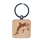 Curious Dolphin Engraved Wood Square Keychain Tag Charm