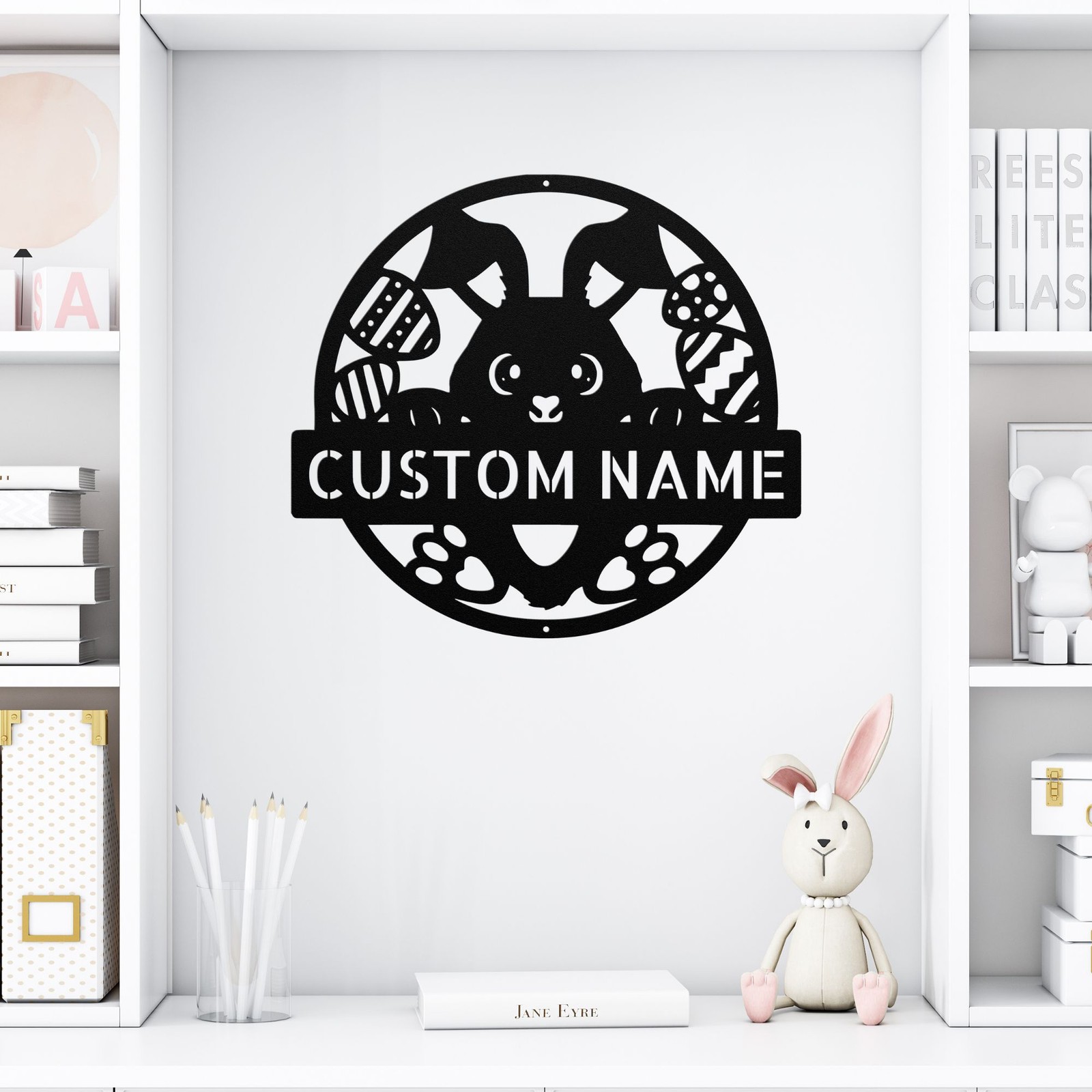 Custom Easter Bunny Metal Sign Personalized Spring Holiday Wall Decor Gifts