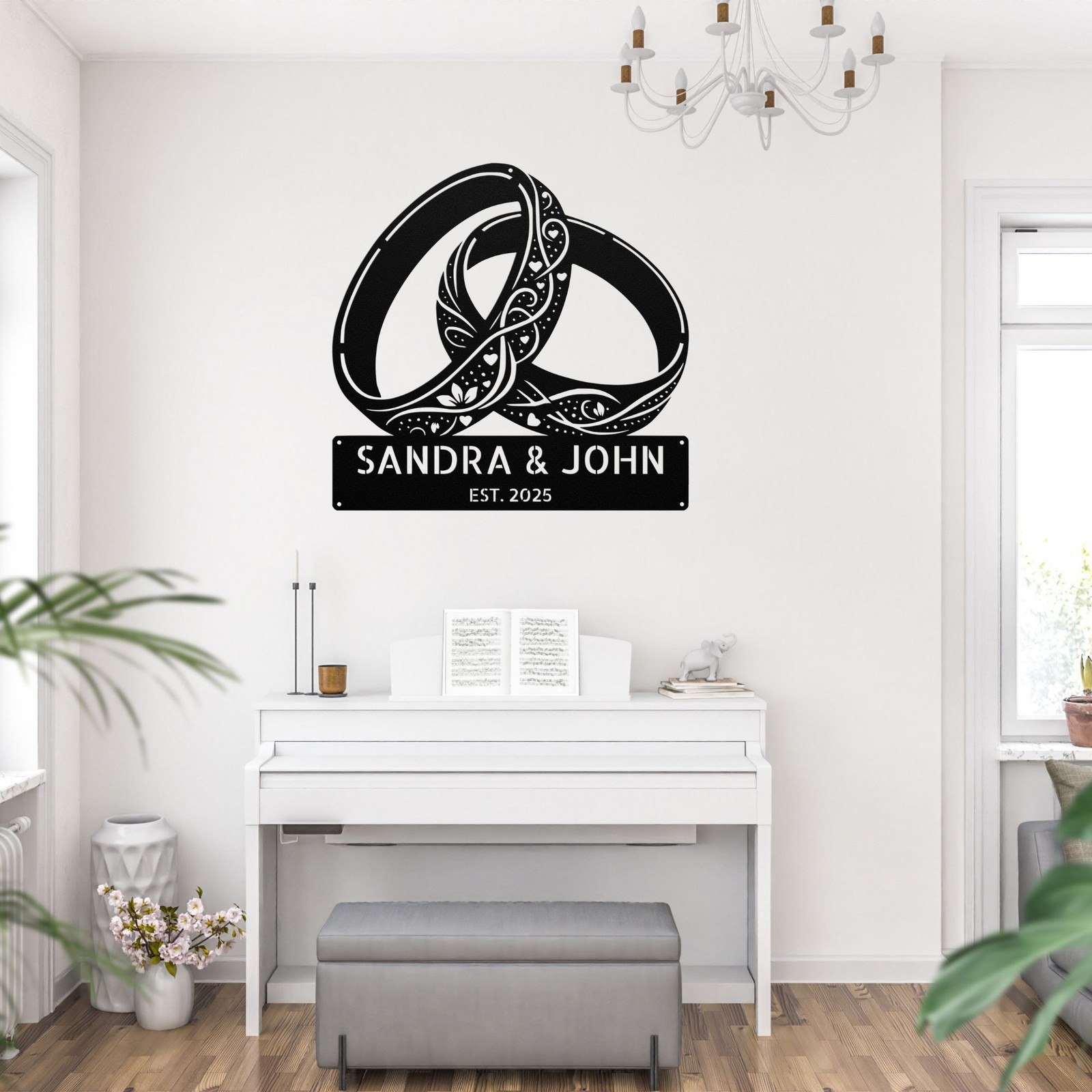 Product Description Celebrate love and commitment with this Custom Rings Metal Sign , a beautifully designed personalized wedding gift perfect for newlyweds, engaged couples, anniversaries, and romantic home decor . Featuring interlocking rings, elegant script, and a customizable name or date , this high-quality metal sign is a timeless symbol of eternal love . π Key Features: β Customizable with Names, Wedding Date, or Special Message β A unique and heartfelt keepsake . β Premium-Quality Metal β Crafted from durable, rust-resistant steel or aluminum for long-lasting elegance . β Beautiful Wedding Ring Design β A symbol of love, unity, and commitment . β Weather & Fade-Resistant Finish β Ideal for both indoor & outdoor display . β Perfect for Wedding Gifts, Anniversaries, & Home Decor β A romantic and meaningful addition to any space. π A Thoughtful Gift for Couples! π Looking for a special wedding, engagement, or anniversary gift ? This personalized rings metal sign is a one-of-a-kind present that newlyweds and long-time couples will cherish forever. π Available Sizes: Choose from multiple sizes to fit bedrooms, living rooms, wedding venues, or reception areas . π§ Easy to Hang & Display: Comes with pre-drilled holes for quick and secure mounting on walls, doors, or wedding backdrops . π Perfect for: Wedding & Engagement Gifts π°βοΈπ€΅βοΈ Anniversary & Romantic Home Decor β€οΈ Bridal Shower & Coupleβs Celebration π Bedroom & Living Room Wall Art π‘ Wedding Reception & Venue Decorations π Service and Color Choice My metal signs are designed to be personalized just for you, making them the perfect addition to any space! The default color is Black , but I also offer a variety of beautiful options including Copper, Gold, White, and Silver . After placing your order, simply contact me with your preferred color choice, and I'll ensure your sign is exactly how you envision it. Letβs create something special together! π How Metal Signs Are Measured Metal signs are measured from the widest point to the opposite widest point of the design. The listed size (8β, 10β, 12β, 18β, 24β, 30β, 36β, etc.) always refers to the longest edge of the artwork, not the height only and not the width only. Because every design has its own shape and proportions, the other dimension (height or width) will adjust automatically . π Example (30-Inch Size) When selecting a 30-inch sign , the longest side of the design will measure 30 inches . If the design is wider than it is tall: Width = 30 inches Height adjusts proportionally (often around 18β22 inches depending on the design) If the design is taller than it is wide: Height = 30 inches Width adjusts proportionally This ensures the sign keeps its correct proportions and the original shape, no matter which size is selected. π¨ Custom Designs & Logos Welcome Have a special idea in mind? I can make it happen! Whether you need a business logo , family emblem , pet silhouette , or a one-of-a-kind design , I can create it from scratch and turn it into a high-quality metal sign. You can send your concept, sketch, or photo, and Iβll handle the custom design, editing, and production from start to finish. Your vision becomes real metal artwork made exactly the way you want it. β¨ Custom Any Design: If you have a special idea in mind, I can turn it into a metal sign, just message me! π¦ Ordering & Gift-Ready Each sign is crafted to order with great care and attention to detail. Your piece arrives ready to hang , making it easy to display or give as a thoughtful gift. Whether it's for your home or for someone special, every sign is made to impress and last for years. π Your support means the world to me and my family. Thank you for helping keep this small art business growing. π Production & Shipping Every sign is made to order with a fast turnaround time. Production Time: 1β2 business days Free Shipping: UPS Ground (estimated 2β5 business days ) Expedited Shipping: FedEx 2-Day Delivery available at checkout Shipping Location: All orders ship from Indiana, USA Each order is packed securely to ensure your metal sign arrives safely and ready to display.