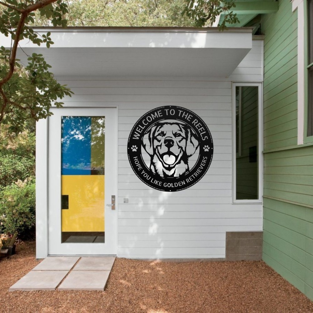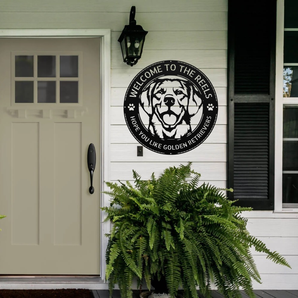 Custom Golden Retriever Welcome Metal Sign Family Name Dog Lover Gift