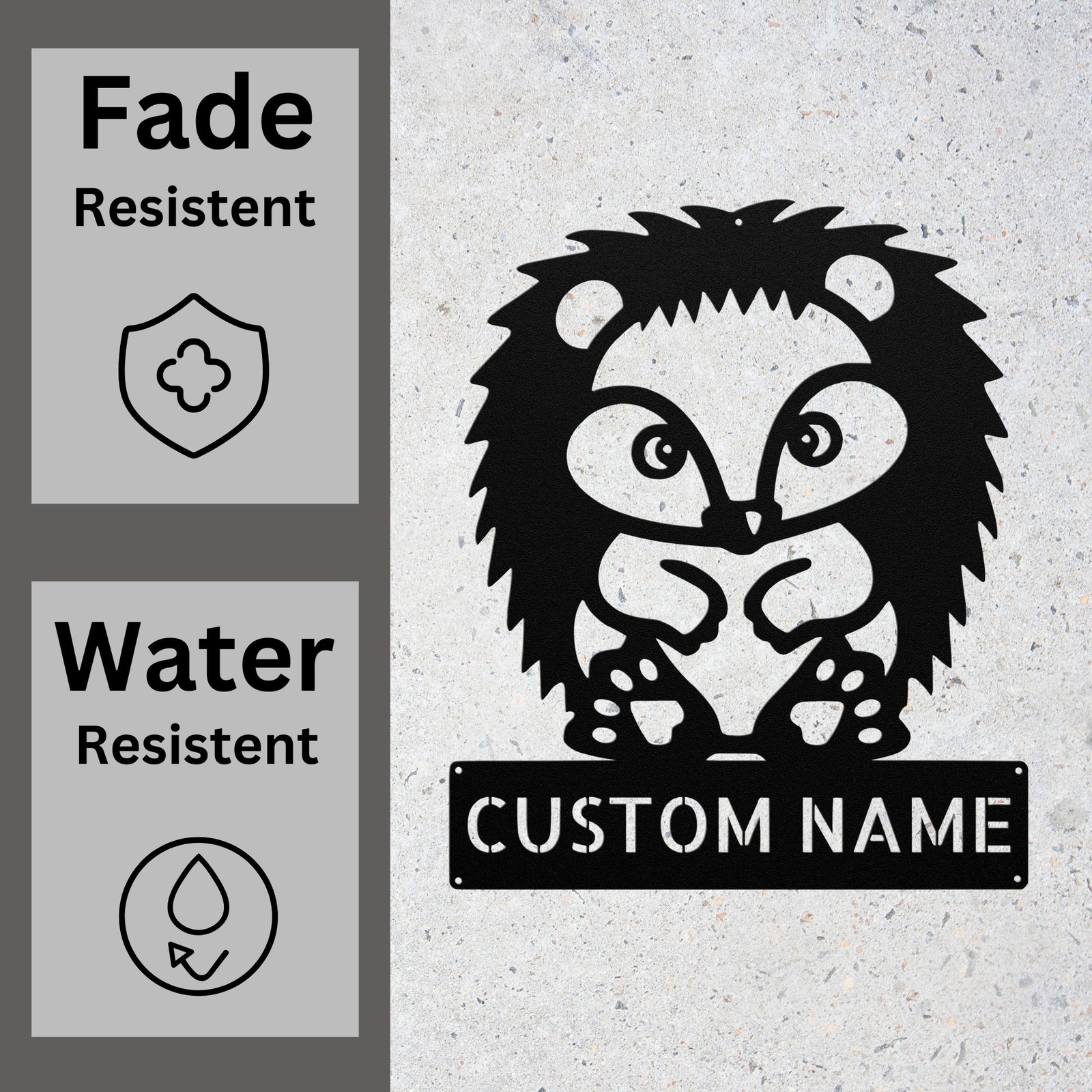 Product Description Bring the adorable magic of the forest into your space with this Custom Hedgehog Metal Sign ! Featuring a charming hedgehog design , this high-quality personalized metal plaque is perfect for woodland-themed nurseries, rustic home decor, garden spaces, and animal lovers . Whether youβre decorating a cottage, cabin, outdoor patio, or nature-inspired room , this custom metal sign adds a warm and cozy feel to any setting. π Key Features: β Customizable with Name, Quote, or Special Message β Make it uniquely yours! β Premium-Quality Metal β Crafted from durable, weather-resistant aluminum for long-lasting beauty. β Adorable Hedgehog Design β A perfect addition to woodland, forest, or animal-themed decor . β Fade & Rust-Resistant Finish β Ideal for both indoor & outdoor display. β Perfect for Any Nature & Animal-Themed Space β Great for kidsβ rooms, nurseries, gardens, and rustic farmhouse settings . π A Delightful Gift for Animal & Nature Lovers! π Looking for a unique and heartwarming gift for a wildlife enthusiast, child, or woodland decor fan ? This custom hedgehog metal sign makes a wonderful present for birthdays, baby showers, housewarmings, and special occasions . π Available Sizes: Choose from multiple size optionsβwhether you need a small decorative sign or a large statement piece . π§ Easy to Hang & Display: Designed with pre-drilled holes for effortless mounting on walls, garden gates, nursery doors, or outdoor enclosures . π¦ Perfect for: Woodland & Forest-Themed Rooms π² Nurseries & Kidsβ Bedrooms πΎ Personalized Gifts for Animal Lovers π Cottage, Cabin & Rustic Farmhouse Decor π‘ Outdoor Garden & Patio Accents πΏ Service and Color Choice My metal signs are designed to be personalized just for you, making them the perfect addition to any space! The default color is Black , but I also offer a variety of beautiful options including Copper, Gold, White, and Silver . After placing your order, simply contact me with your preferred color choice, and I'll ensure your sign is exactly how you envision it. Letβs create something special together! π How Metal Signs Are Measured Metal signs are measured from the widest point to the opposite widest point of the design. The listed size (8β, 10β, 12β, 18β, 24β, 30β, 36β, etc.) always refers to the longest edge of the artwork, not the height only and not the width only. Because every design has its own shape and proportions, the other dimension (height or width) will adjust automatically . π Example (30-Inch Size) When selecting a 30-inch sign , the longest side of the design will measure 30 inches . If the design is wider than it is tall: Width = 30 inches Height adjusts proportionally (often around 18β22 inches depending on the design) If the design is taller than it is wide: Height = 30 inches Width adjusts proportionally This ensures the sign keeps its correct proportions and the original shape, no matter which size is selected. π¨ Custom Designs & Logos Welcome Have a special idea in mind? I can make it happen! Whether you need a business logo , family emblem , pet silhouette , or a one-of-a-kind design , I can create it from scratch and turn it into a high-quality metal sign. You can send your concept, sketch, or photo, and Iβll handle the custom design, editing, and production from start to finish. Your vision becomes real metal artwork made exactly the way you want it. β¨ Custom Any Design: If you have a special idea in mind, I can turn it into a metal sign, just message me! π¦ Ordering & Gift-Ready Each sign is crafted to order with great care and attention to detail. Your piece arrives ready to hang , making it easy to display or give as a thoughtful gift. Whether it's for your home or for someone special, every sign is made to impress and last for years. π Your support means the world to me and my family. Thank you for helping keep this small art business growing. π Production & Shipping Every sign is made to order with a fast turnaround time. Production Time: 1β2 business days Free Shipping: UPS Ground (estimated 2β5 business days ) Expedited Shipping: FedEx 2-Day Delivery available at checkout Shipping Location: All orders ship from Indiana, USA Each order is packed securely to ensure your metal sign arrives safely and ready to display.