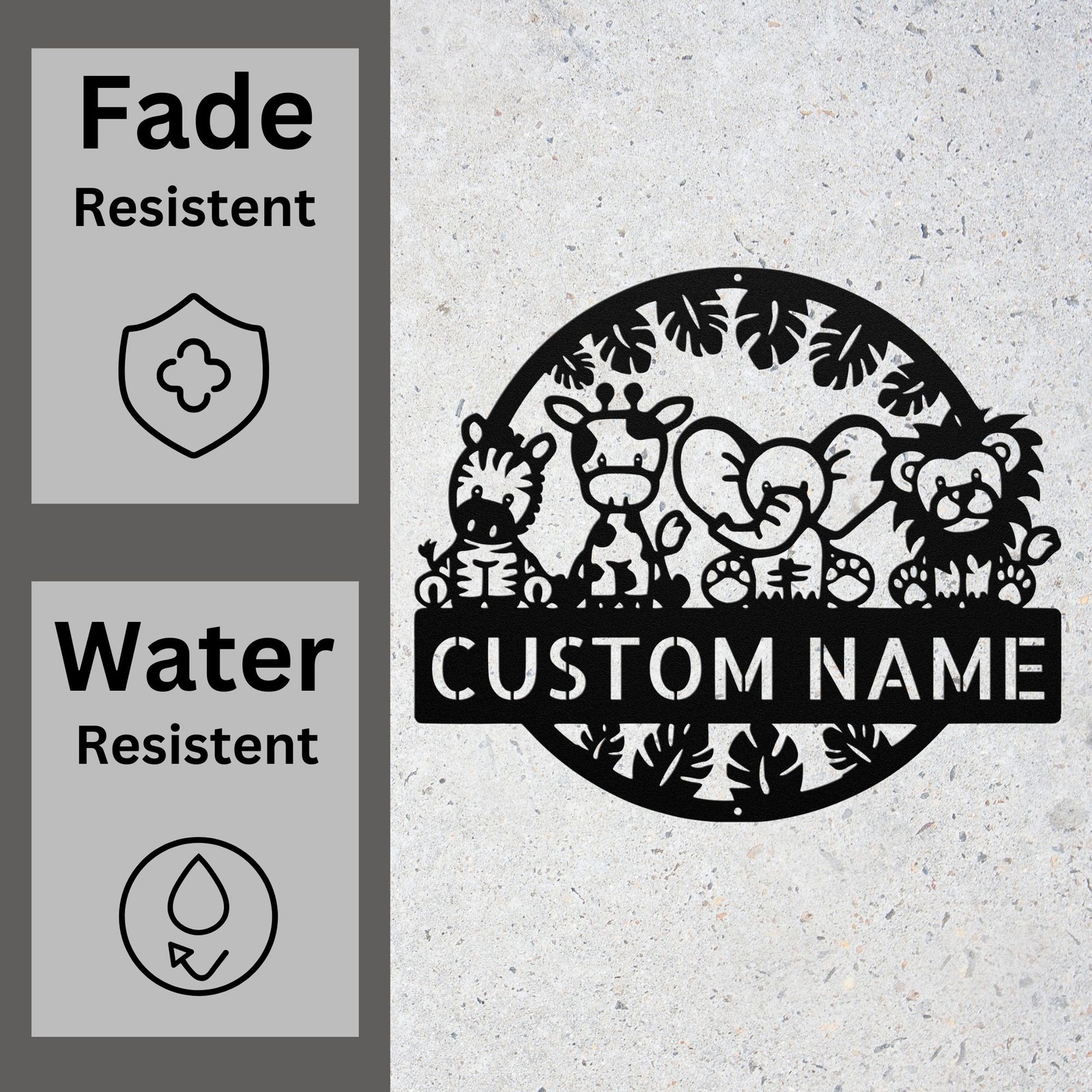 Product Description Transform any space into a wild and whimsical safari with our Custom Cute Safari Animals Metal Sign ! This beautifully designed metal sign features adorable jungle animals, making it an ideal personalized decoration for baby nurseries, kidsβ rooms, playrooms, and even safari-themed birthday parties. πΏ Key Features: β Personalized with Your Childβs Name β Create a one-of-a-kind piece with a custom name or message. β Premium Quality Metal β Made from durable, high-quality aluminum to ensure long-lasting beauty. β Adorable Safari Design β Features charming illustrations of lions, elephants, giraffes, zebras, and more. β Perfect for Any Occasion β Ideal for nursery dΓ©cor, kidsβ room signs, baby shower gifts, and jungle-themed parties. β Weatherproof & Fade-Resistant β Suitable for both indoor and outdoor use. π A Unique & Thoughtful Gift Idea π Looking for a custom baby shower gift, birthday present, or nursery wall art ? This personalized jungle animals sign is a heartwarming and creative choice for new parents, kids, or animal lovers. π Available Sizes: Choose from multiple sizes to fit your space perfectly. Whether you need a small name plaque or a large wall sign , we have the right option for you. π§ Easy Installation: Designed with pre-drilled holes for easy hanging , making it effortless to mount on walls, doors, or playroom spaces. Service and Color Choice My metal signs are designed to be personalized just for you, making them the perfect addition to any space! The default color is Black , but I also offer a variety of beautiful options including Copper, Gold, White, and Silver . After placing your order, simply contact me with your preferred color choice, and I'll ensure your sign is exactly how you envision it. Letβs create something special together! π How Metal Signs Are Measured Metal signs are measured from the widest point to the opposite widest point of the design. The listed size (8β, 10β, 12β, 18β, 24β, 30β, 36β, etc.) always refers to the longest edge of the artwork, not the height only and not the width only. Because every design has its own shape and proportions, the other dimension (height or width) will adjust automatically . π Example (30-Inch Size) When selecting a 30-inch sign , the longest side of the design will measure 30 inches . If the design is wider than it is tall: Width = 30 inches Height adjusts proportionally (often around 18β22 inches depending on the design) If the design is taller than it is wide: Height = 30 inches Width adjusts proportionally This ensures the sign keeps its correct proportions and the original shape, no matter which size is selected. π¨ Custom Designs & Logos Welcome Have a special idea in mind? I can make it happen! Whether you need a business logo , family emblem , pet silhouette , or a one-of-a-kind design , I can create it from scratch and turn it into a high-quality metal sign. You can send your concept, sketch, or photo, and Iβll handle the custom design, editing, and production from start to finish. Your vision becomes real metal artwork made exactly the way you want it. β¨ Custom Any Design: If you have a special idea in mind, I can turn it into a metal sign, just message me! π¦ Ordering & Gift-Ready Each sign is crafted to order with great care and attention to detail. Your piece arrives ready to hang , making it easy to display or give as a thoughtful gift. Whether it's for your home or for someone special, every sign is made to impress and last for years. π Your support means the world to me and my family. Thank you for helping keep this small art business growing. π Production & Shipping Every sign is made to order with a fast turnaround time. Production Time: 1β2 business days Free Shipping: UPS Ground (estimated 2β5 business days ) Expedited Shipping: FedEx 2-Day Delivery available at checkout Shipping Location: All orders ship from Indiana, USA Each order is packed securely to ensure your metal sign arrives safely and ready to display.