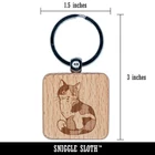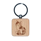 Cute and Curious Spotted Calico Cat Engraved Wood Square Keychain Tag Charm