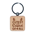Cutest Cupid of All Valentine's Day Engraved Wood Square Keychain Tag Charm