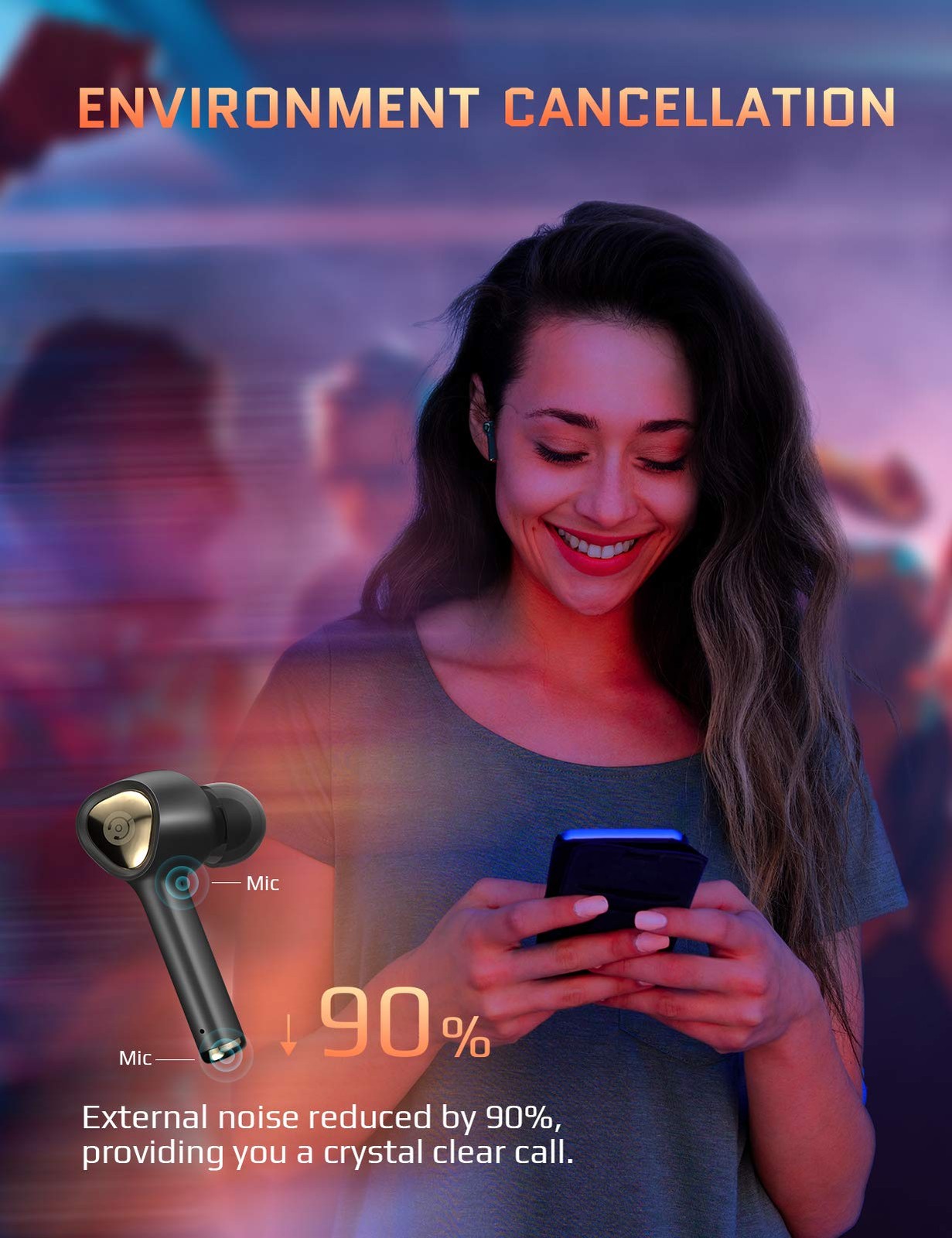 [Qualcomm 3032 chips Bluetooth 5.0] Glare bluetooth earbuds adopt Qualcomm 3032 bluetooth chips and the most advanced bluetooth 5.0, provide a stable connection for non-stop high-quality wireless streaming. [Marvellous Hi-Fi Stereo] Thanks to 7mm biodynamic drivers and Qualcomm apt-X audio coding for Android/ ACC coding for iOS, Glare wireless earbuds delivers lossless, ultra-realistic audio with wider soundstage, deeper bass, and exceptional detail, bringing you a complete immersion in higher CD quality musics . Environmental Noise Cancelling for Clear Call] Equipped with 4 microphones and cVc 8.0 ENC smart noise reduction technology, able to block 90% of external noise, extracts your voice and transfers it to callers, ensuring a supremely clear sounding call. [Ultra Long Playtime & Fast Charge] A single charge can give you 8 hours of non-stop listening, while up to 36 hours with the a charging case. A 10-minute short charge can provide 1.5 hours of playtime. With the provided Type-C cable, it takes only 1 hours to fully charge the charging case. [One-Step Pairing & Touch Control] Just open the charging case and connect for the first pair, the bluetooth earbuds will automatically reconnect to the last paired device once it is out of the charging case. The True wireless Bluetooth also supports single headset use. Finger touch enables you to play/pause music, adjust volume, control previous song/next song and receive/end calls easily. Included components: Wireless Charging Case