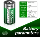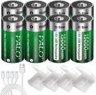 萩1.5V D Rechargeable Batterie: Designed to meet all your high-power demands, these rechargeable lithium batteries are not only environmentally friendly but also highly efficient. 萩Type-C USB Charging: The charging process is made simple and convenient with the indicator light that flashes green during the charging process, ensuring you know exactly when they are ready for use. 萩No Memory Effect: With a battery life of up to 1500 cycles, these rechargeable batteries are built to last and offer significant monetary savings compared to single-use batteries. 萩Fast Charging: Quick full charging is achieved in 3 hours with an additional 2-year standby time. 萩High Capacity: Boasting a high capacity of 15000mWh with a constant voltage of 1.5V, these USB D Lithium-ion batteries provide better performance and longevity than other options available in the market. 萩Full Protection: Safety is of utmost importance, which is why these batteries come with full protection against over-charging, over-discharging, over-voltage, over-temperature, over-current, short circuit, and undervoltage. 萩Widely Application: Compatible with any household device that requires D cell batteries, these rechargeables are perfect for LED candles, flashlights, spotlights, gas water heaters, baby monitors, toys, and much more. 萩Battery storage case: 1.5V D Lithium Batteries com are packed with battery storage case, easy to storage batteries, very convenient for taking and travelling. Product Description More Capacity & Saving Money: These lithium d batteries are a great option for high-end electronics as these cells typically have higher capacities than their alkaline counterparts. you won't need to replace rechargeable batteries nearly as often as alkaline cells. What You Get 8× D Size Rechargeable Batteries 4× Battery Storage Case 2 x USB Cable D Batteries Specification: Material: Fireproofing ABS shell Cell type: A+ Lithium Polymer battery cell Input: Type C USB(5V) Output: 1.5V Battery capacity: 15000mWh Charge time: 3 hours Compatibility: D battery/LR20 Size: 32*60mm USB rechargeable D batteries: Easy to charging:Unique Type-C charging port design on the top of battery,no memory effect. Constant Rechargerable D battery PALOGREEN Constant 1.5V Output D cell rechargeable batteries 15000mah ,long lasting lithium batteries with no memory effect, steady 1.5v output voltage. Wide compatibility: Standard size D batteries It can be widely used in various devices such as LED candle, flashlight, portable CD and MP3 players, digital camera, children' toys, water heater, etc,.