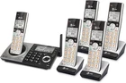 DECT 5-Handset Cordless for Home with Dual Keypad Base, Answering Machine, Call Blocking, Caller ID Announcer, Intercom and Long Range, Silver/Black LONG RANGE DUAL KEYPAD BASE ANSWERING SYSTEM Experience the best in long-range coverage and clarity, provided by a unique antenna design and advances in noise-filtering technology. This reliable system provides 5 cordless handsets and a base with large display, dial-pad, and a digital answering machine that can record up to 22 minutes of incoming / outgoing messages, outgoing announcements and memos. SMART CALL BLOCKER & CALLER ID ANNOUNCE Say goodbye to unwanted calls. Robocalls on your landline are automatically blocked from ever ringing through - even the first time. You can also permanently blacklist any number you want with one touch on the delicated key on the handset. The call block directory can store up to 1,000 name and number entries. Plus, the handset and base announce the name of the caller, so you can decide on answer the call or block it - screening call is never easier. LARGE SCREEN, BIG TEXT, LIGHTED KEY PAD High-contrast text on the extra-large screen makes it easy to read incoming caller ID or call history records. Plus, the enlarged font and extra-large and lighted handset keypad allows for easy dialing in low-light conditions. This feature is especially helpful for those who are visually impaired. SPEAKERS & INTERCOM This cordless system has built-in a simulated full-duplex speaker on handset and base allowing both ends to speak - and be heard - at the same time for conversations that are more true to life. Also designed with useful features like intercom to help your daily communications enjoyable. EXPANDABLE TO 12 HANDSET Easily add accessory handsets (use CL80107 or CL80067 models) up to 12 total, with just one jack. See, hear and make calls with ease with the DECT Expandable Answering System with Smart Call Blocker and Unsurpassed Range. With this system, you can say goodbye to unwanted calls waking you up in the middle of the night or tying up the line. Robocalls are automatically blocked from ever ringing through—even the first time. You can also permanently blacklist any number you want with one touch. The dial-in base means you'll always be able to make calls, even if the cordless handsets are temporarily misplaced.
