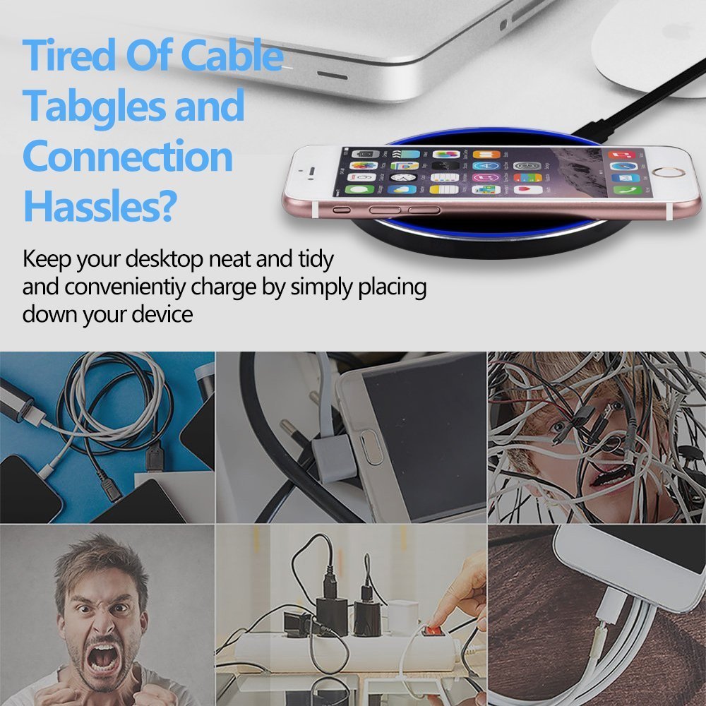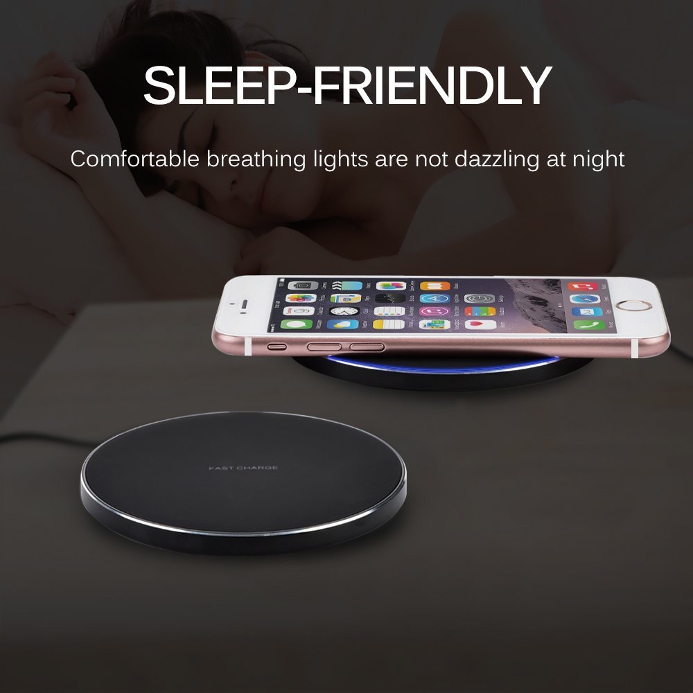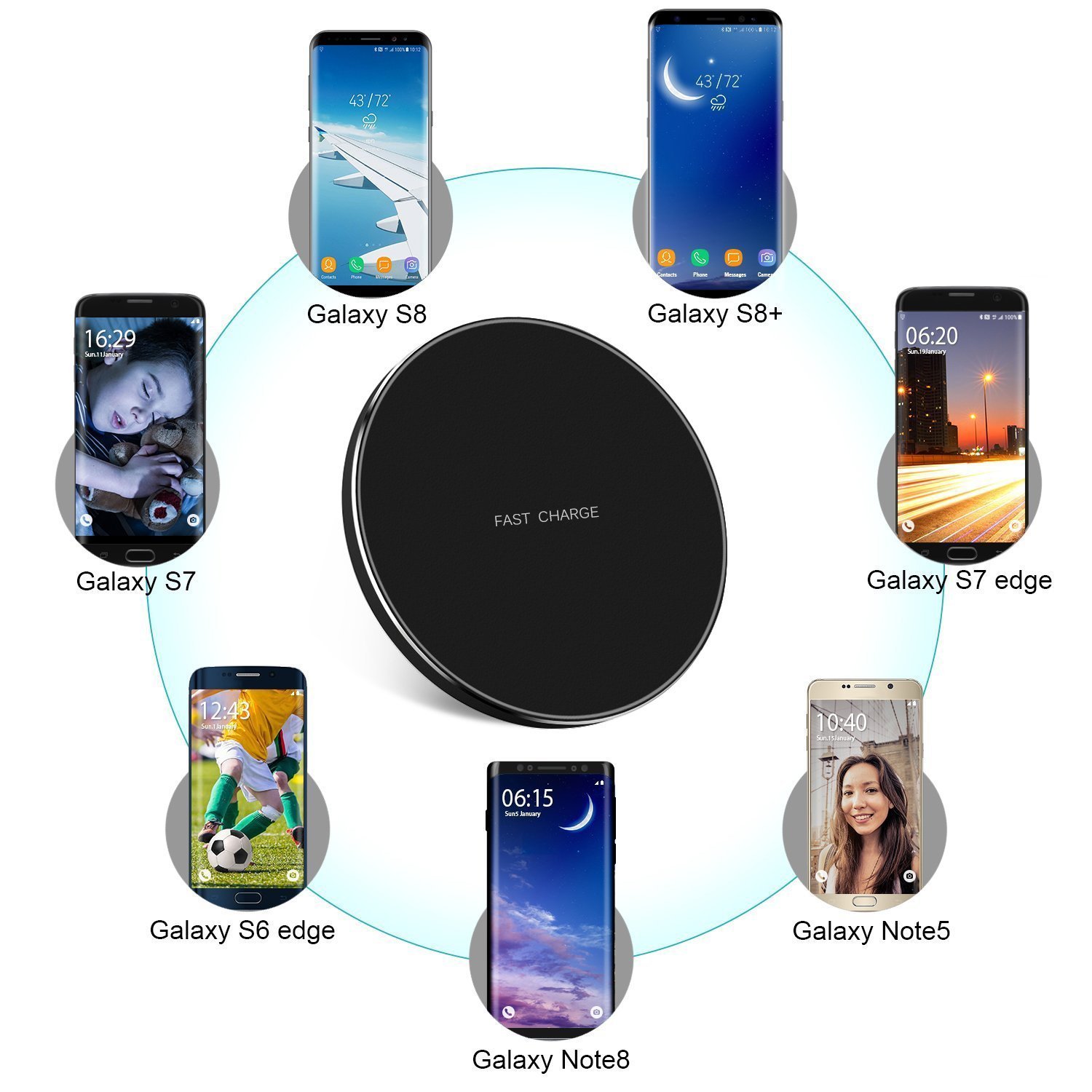 • FAST CHARGE MODE: from zero to full battery, fast wireless charger will take 2.5-3 hours; The charger is suitable for Galaxy Note 8, S8, S8+, Galaxy S7, Galaxy S7 edg, Galaxy S6 edge+ and Note 5. For iPhone X, iPhone 8, iPhone 8 Plus and other qi-enabled devices will charge at regular wireless charging speeds. Those phones without qi-function need an additional qi wireless receiver (Not included). • WIRELESS TIME: DethinTon qi fast wireless chargers save you time and free up space by eliminating "rat's nests" of cords on or around your desk. Get rid of your power cords and grab a wireless phone charger to add extra simplicity and ease to your life. • ULTRA SLIM: Ultra Slim charging pad with 0.38 inch thickness, generates 50% less heat, cooler and more efficient charging; A fashion ornament with technology is good for your home and office. • FOREIGN BODY DETECTION FUNCTION: DethinTon wireless charger will turn into blue for 2 seconds when it connects to the power, and will turn into green and stays when it starts to charge the phone; The blue light will flash all the time and stop charging if there is foreign body on wireless charger, like magnetic pad, metal case and phone not compatible with, etc, trying to avoid these when charging. Product description Color:black Fast Charge Wireless Charging Pad The DETHINTON quick wireless charger is faster than standard wireless charging pads, which saves your time greatly. It is tested that the fast wireless charge pad takes 2.5 to 3 hours, making your phone charged from zero to full battery. Applicable Models for Fast Charge Fast charge modes are ONLY available for Samsung Galaxy Note 8, S8, S8 Plus, S7, S7 Edge, Note 5, and S6 Edge Plus models and will charge all the Qi-enabled devices at a regular speed. Normal speed mode for other Qi-enabled devices Applicable to iPhone X, iPhone 8, iPhone 8 Plus; Nexus 4/ 5/ 6/ 7(2013); LG G6, LG D1L, LG LTE2, LG G2 (Verizon); HTC 8X, HTC Droid DNA, HTC Rzound, HTC Incredible 4G LTE; Moto Droid Turbo; And other devices marked Qi. Say Goodbye to Tangled Wires! Just take your phone from the wireless charger freely, no worry about storing the messy data cable, no beep and dazzling light annoy you during sleeping. NOTE Use a 2 Amp AC adapter. Confirm that your device is Wireless-compliant before purchase or use your own Wireless-compliant cover to enable charging Protective cases may need to be removed before charging. For optimal performance, your device should be placed in the center of the pad. Tips Metal case or metal piece on case and case over 4mm(otterbox) will BLOCK charging; When the light flashes by blue and green alternately, please check that if there is foreign body, like metal matter and then place it charge again. Please put wireless usb charger in dry place What's in the box 1 x DethinTon fast wireless charger stand 1 x Micro USB Power Cord (not including the AC adapter) 1 x User Manual