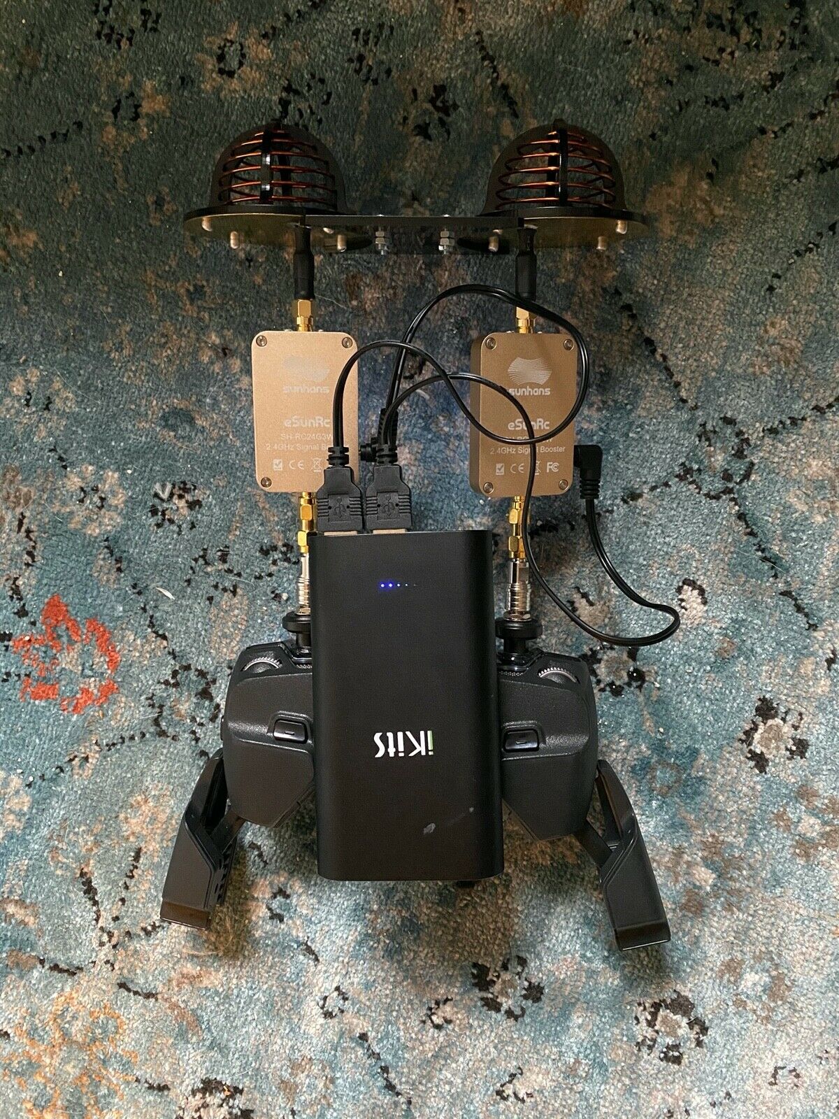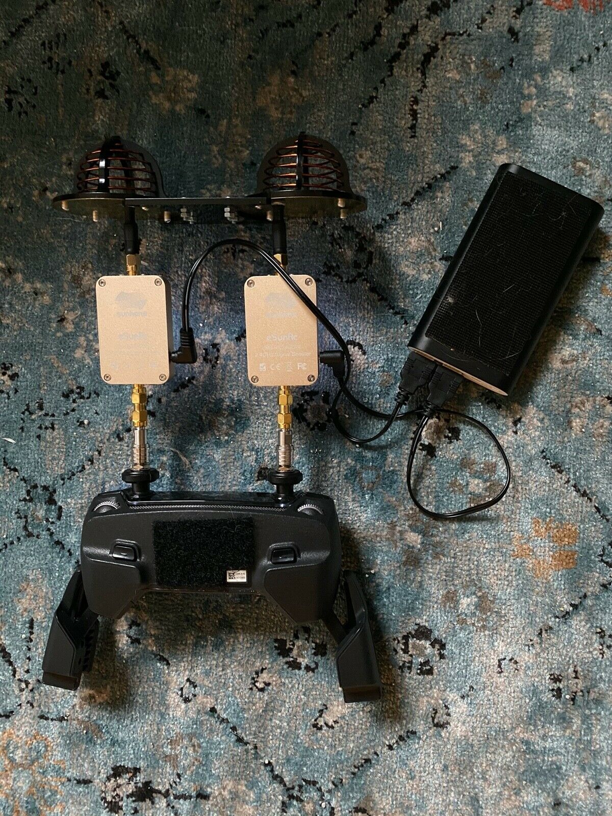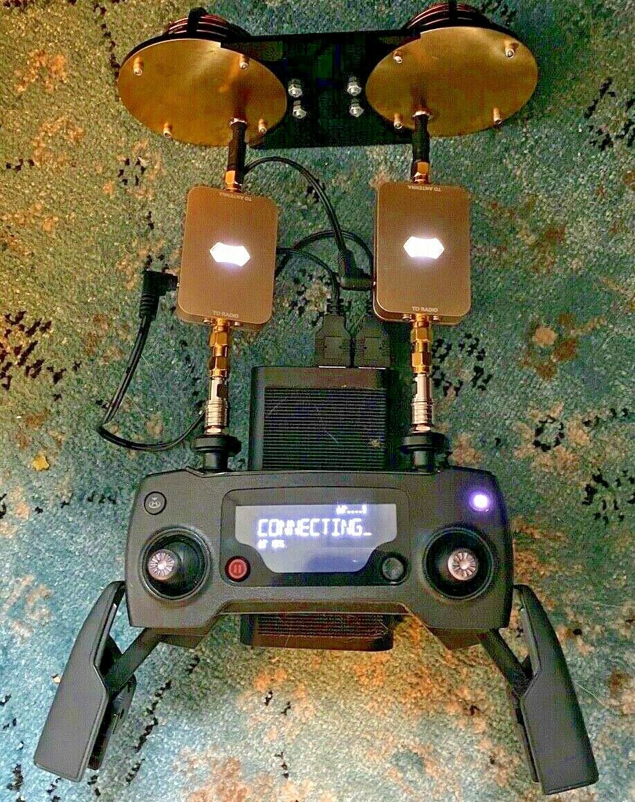 - DJI Mavic Pro Remote Controller upgraded with antenna mode x1. Fast release connectors. - FPVLR DJI MAVIC PRO 10DBI LONG RANGE CIRCULAR ANTENNA - Sunhans eSunRC 3000mW 2.4Ghz 35dBm WiFi Signal Booster x2 - iKits Panasonic Battery Fast Charge Power Bank,10200mAh Aluminum 2 Port Smart Charge Dual port: 2.4A+2.4A x1 - extra sunhans power cables / SMA cables / velcro (see on picture) everything works and connecting to drone drone and case not included!