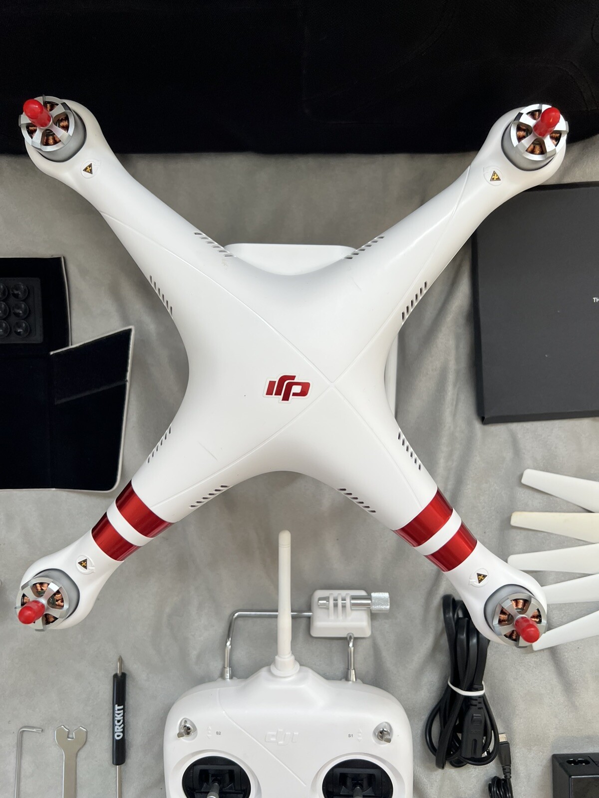 Excellent condition. No battery included. What you’re getting: DJI phantom 2 Vision Drone 9 propellers (some used, some new) Extra screws Wrench Double ended screwdriver Allan wrench 2 Range extenders 2 mobile device holders Battery charger Mini USB charger 16 GB micro SD chip ThinkTank neck strap & caribeaner UCTOPFPV Sunshield Instruction manual + additional paperwork ThinkTank backpack Free shipping. The DJI Phantom 2 Vision PV330 is a professional drone equipped with a 1080p HD video recording camera. This model is designed specifically for capturing high-quality aerial footage and comes with a transmitter for easy control. The product listing indicates that the drone and transmitter are unused, making it an appealing option for those looking for a reliable camera drone in excellent condition.