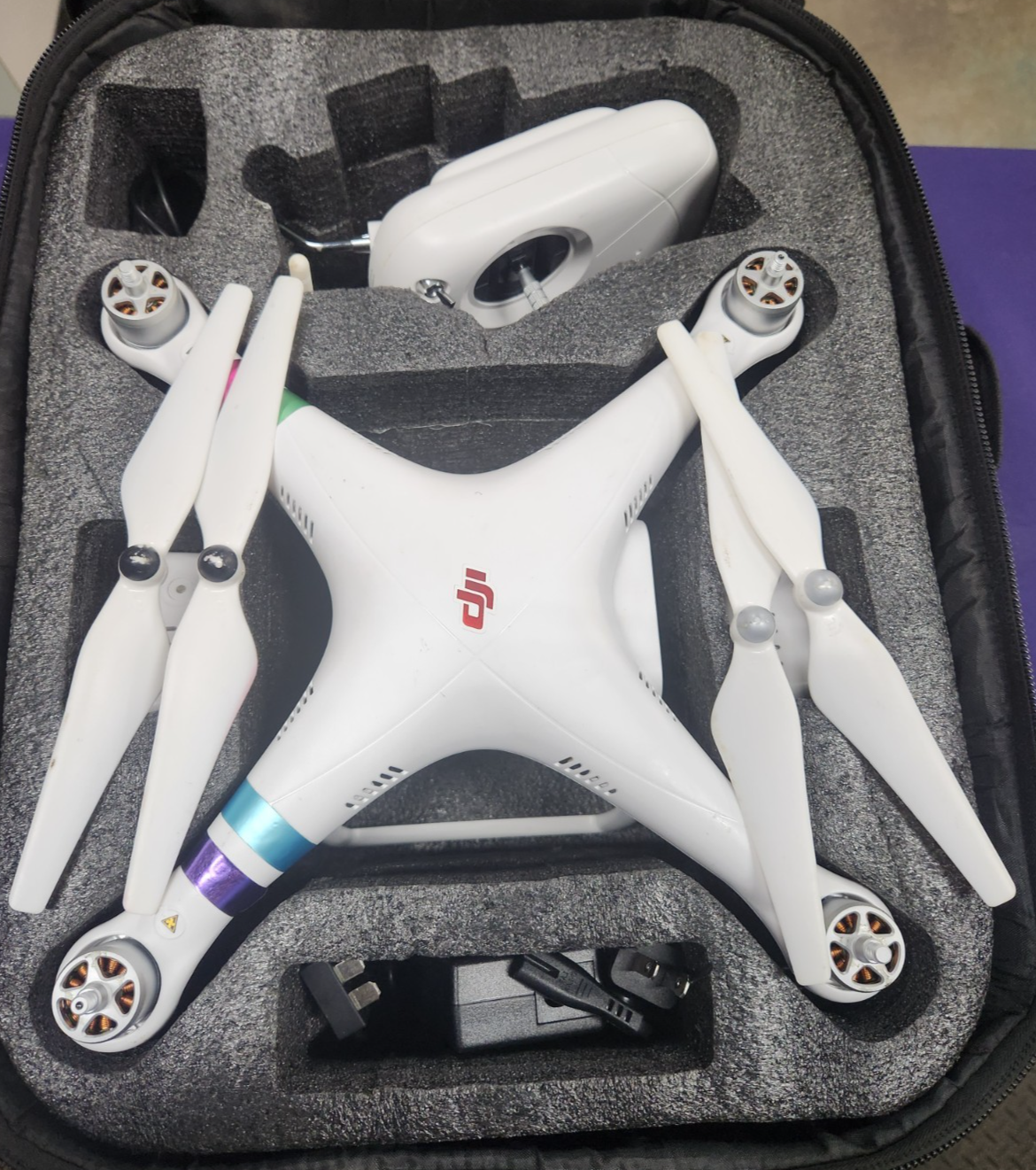 Up for sale is a DJI Phantom 3 Standard Quadcopter Camera Drone missing two camera stabilizers. Model w321. Good condition, general cosmetic wear from use. It has been tested and is functional. Please see photos to see what pieces are missing, the two stabilizers do not hinder flight. Sells with book bag style case, two rechargeable batteries, controller, connection cord and charger. See pics and feel free to message me with any questions. I ship same or next business day.
