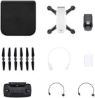 Quick Launch With FaceAware, Spark lifts off from your hand by recognizing your face.* It takes off and hovers in place within seconds of powering on. *Propeller guards are recommended when using these functions. Simple Control Take amazing aerial photos using just hand gestures, without a remote controller or mobile device.* *Remote controller (optional accessory) required. Create With Ease Intelligent Flight Modes and intuitive controls help you create cinematic aerial videos with just a few taps. Edit and Share The DJI GO 4 app features automatic editing templates and an array of filters. Quickly edit videos and share them straight to social media. TapFly, Fly at Your Fingertips In TapFly mode, just envision your shot and Spark captures it for you. Tap your phone screen and Spark, using vision technology, flies in the direction of your tap or exactly where you tapped while actively sensing obstacles. ActiveTrack, Stay on Target With ActiveTrack, Spark automatically recognizes objects of different shapes and sizes then tracks them according to what they are and how fast they move. This makes tracking much easier and more reliable. Gesture, Capture Your Moments Deep learning gesture recognition allows you to take selfies with simple hand motions. With Palm Control mode, control Spark’s movement by hand. Mechanical Gimbal Stabilization Spark's 2-axis mechanical gimbal and UltraSmooth technology dramatically reduce shake and rolling shutter effect, keeping shots stable and detailed. Powerful Lens, Capture the world All Spark images are consistently sharp and vivid with very little color aberration and distortion. Spark's camera has an f/2.6 wide-angle lens with a 25 mm equivalent focal length. Five elements are arranged into a single group that fit into a compressed frame. 1/2.3'' Sensor, Record More Details Small and compact, Spark's camera features a 1/2.3 inch CMOS sensor, allowing you to shoot stabilized video at 1080p and stills at 12 MP. Larger pixels mean Spark is acutely sensitive to light and records colors precisely. Powerful Propulsion With its aerodynamic, lightweight, and slick design, Spark soars through the air with minimal wind resistance. The gimbal and camera are flush with the aircraft, significantly increasing stability. Powerful propulsion offers steady flight in strong winds at up to 31 mph (50 kph) in Sport Mode.2 And an advanced flight control system means flying Spark is fun and intuitive. HD Wi-Fi Video Transmission (Optional ) Fly Farther, See More Innovative HD Wi-Fi technology allows for 720p real-time video transmission from up to 1.2 mi (2 km) away.* *Unobstructed, free of interference, with remote controller when FCC compliant. Stay in the Air, Uncompromised Flight Time Even with all of Spark's intelligent features, flight time isn't compromised. Fly for up to 16 minutes with a fully-charged battery, capturing more footage.* *Estimated flight time is based on flying in windless conditions at a constant speed of 12.4 mph (20 kph). Actual flight times may vary depending on your environment. FPV Flight, Aerial Immersion (Optional ) Switch to Sport Mode and unleash Spark's speed potential. Sport Mode sets the gimbal mode to FPV by default, so the camera moves with you as you fly. For an upgraded FPV experience, pick up a pair of DJI Goggles and see a different world.* *Remote controller required; a DJI Goggles - Micro USB OTG Cable is required when working with Spark. What's in the box White Only Aircraft body Battery Propellers 18 Watt USB Charger Charger Micro USB Cable Manual