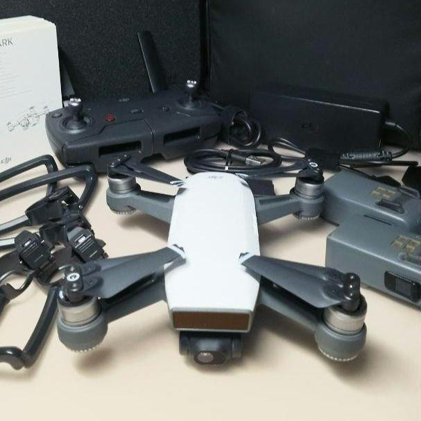 The product is a DJI Spark mini drone, which is palm-sized and incorporates innovative technology. It features a 2.4K camera and automatic hovering capability, making it user-friendly for beginners to capture beautiful aerial footage. The drone supports various flight and shooting modes, including takeoff and landing from the palm and gesture shooting, aided by gimbal technology to reduce shake. Additionally, it includes a new Palm Control feature, allowing operation through specific gestures made with the hand. The technical compliance numbers are 211-170403 and 211-170404. **Set Contents:** - Drone unit x1 - Transmitter x1 - Battery packs x2 - Propellers (one pair) - 3-port charging hub x1 - Charger power cable x1 - USB cable x1 - Propeller guards (one set) - Spark body case - Carrying bag - Instruction manual set The item is in very good condition with no noticeable scratches. Please note that it is a used item, and understanding of this is required before purchase. A simple functionality check has been performed on the product. All items shown in the photographs are included. Please confirm thoroughly before purchasing. I promise fast shipping via FedEx or DHL as soon as possible! Import duties, taxes and charges are not included in the item price or shipping charges. These charges are the buyer’s responsibility. These charges are normally collected by the delivering freight (shipping) company or when you pick the item up - do not confuse them for additional shipping charges.