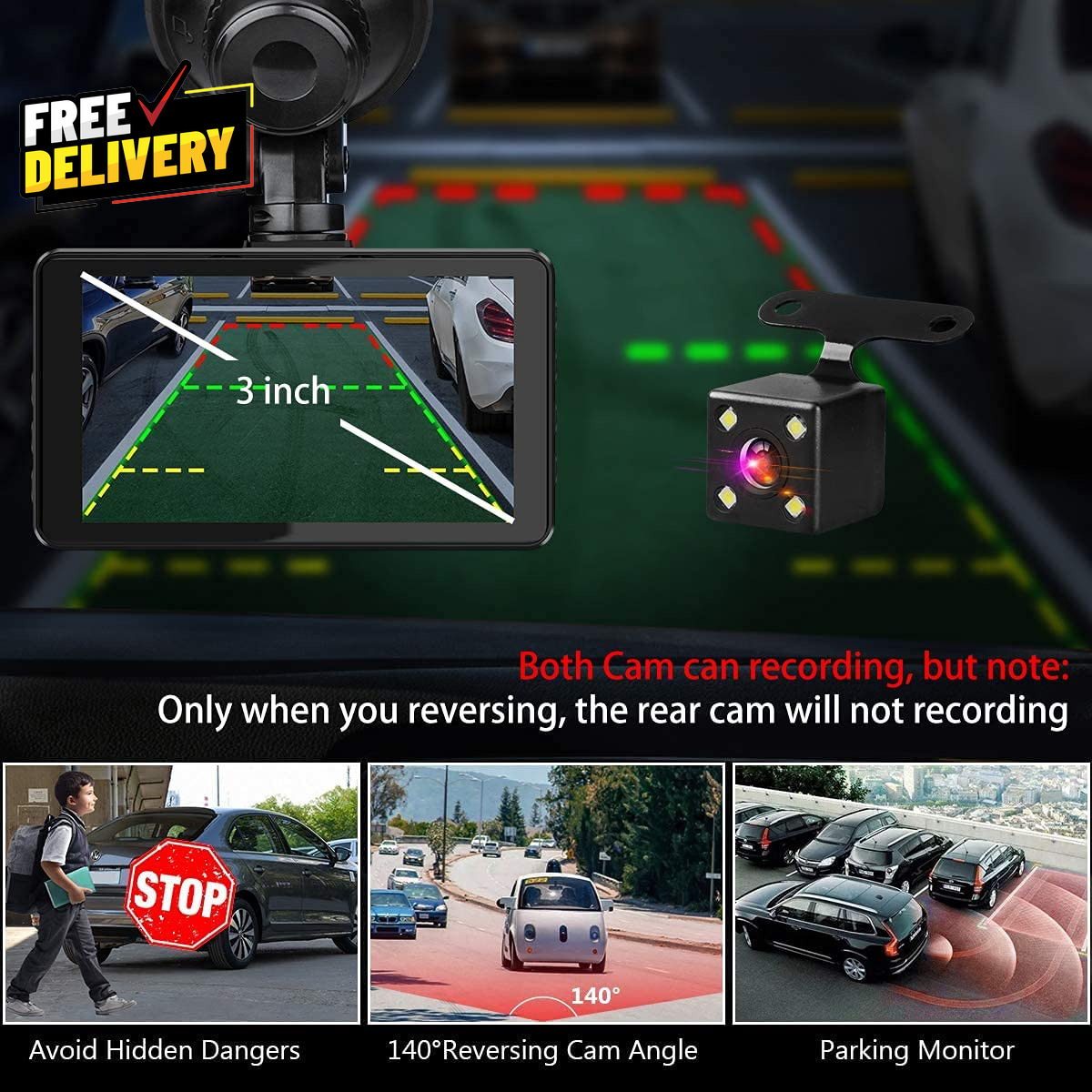 Store New Arrivals Add to Favorite View Feedback Contact Dash Cam Front and Rear, Dash Camera for Cars with 32G Card Super Night Vision, Car Dash Cam 1080P Dashboard Camera with G-Sensor, Parking Monitor, Loop Recording, Motion Detection Car Camera Description [Dash Camera for Cars Front Rear] --- Our car dash cam cigarette lighter charger comes has USB Type-c port, no worry about the charging problems of mobile phones when using this dual dash camera. Combines the f1.8 aperture and WDR tech, you can playback each clear detail on dash cam/PC. Dear you can use the front dash cam only or use dual car dash cam front and back, both can recording well [Car Cameras Dash Cam with Card] --- Vital dash cam can endless working under Loop Recording function. No worry about this car camera will full of storage! The dash cams with 32g card FHD 1920X1080P at 30 fps video enable to capture every road conditions and license plates details. If there are any issues (such as damage or loss of brackets, accessories, etc.), please contact us and we will solve the problem for you and arrange to send it out [Wide Angle Front and Rear Dash Cam] --- Dash cam front camera for car comes with 170°wide field of vision and 140° for dash cam rear. Ultra-wide field of car cameras reduces the blind spots and captures more details. You can also set the camera for car to turn off the screen auto but still keep recording, won't distract your driving. In addition, there are 4 lens switching mode that you can choose [Plug and Play Front Dashcam for Car] --- Front rear dash cam with card, but you will find that you can easily and securely mount the suction cup to your windshield in seconds. This car dash camera's operation is still simple and friendly for new users. If you don't need the Reversing Mode, ther rear camera also can be very easily, just plug and play & hide the wire is ok [On Car Camera - Dash Cam Front and Rear] --- Dash camera G-sensor function make our car safety camera can auto detect and lock the driving recording that we need. Truly restored the driving video/photo with highly sensitivity. Biuone dash cams for car does not support an App to view playback, not wifi car cam but can viewing playback on the front car camera itself or computer. Not dash cam wifi! No GPS Installation of Dual Dash Camera - Rear Dash Cam Install : You can connect the red part of rear camera cable with the positive pole of reversing light, so that it will appear reversing mode when you parking, No recording when you reversing. And if your car already have built in reversing system monitor, Just wrap it directly with tape( the rear camera can keep recording at reversing period) dash cam dash camera install friendly for lady Front rear car dash cam with 32G Card, already inserted in Dash Car Camera.Biuone A20 dash cam for truck/cars/van/suv/taxi (longer extension cable for the dash rear camera is not in the package, rear cam cable longs 6m ) About this dash cam: the rear camera does not display/how to turn off the sound/how to play the rear mirror dash cam file or play it on the computer (1: has question on installation, please let us know. 2: press "down button" speedly turn on/off the audio. 3: Long press "up/down button" to switch the Rront and Rear car camera recording file when you on playback mode, A20 car dash camera support MOV computer playback format Our front car camera is power by cigarette lighter dash camera charger, dashboard camera will auto turn on/off with your car. Don't worry the dashcams for cars front won't drain your car battery. FHD 1080P dash cam front, rear dashcams for cars Loop Recording: When 32g card(Included) is fulled, the dash cams auto overwrites the oldest videos to ensure continuous recording,which keep recording your happy driving journey. Dual dash camera front and rear with 32g card About the Battery: all the battery of car dash cam in the market, only support auto turn on and recording a short time for the urgent situation when you parking. Needs to plug the dual dash cams charger all the time. Do't use the USB Cable as charger, the cable and the USB card reader only used to connect with your computer and playback the recording file ( you can playback on dash cam & can playback the car camera file on your computer) Product description FHD 1080P Front and Rear Dash Camera with 32G Memory Card 1 Dashcam Loop Recording 2 Dash Camera G-Sensor 3 Parking Monitor Dash Cam 4 Super Night Vision Dash Cam with Wide Angle and Reversing Guide Line Easy Installation Car Camera Front and Rear - Plug and Play Dashcam Recording Video Playback Ways : You can see the video on dash cam and PC Do I need to buy a separate memory card for this dash cam? No, our car camera comes with 32G card. ( already inserted in dash camera) Can I easily install and remove this front and rear dash camera? Yes, Our car camera are mounted with suction stand, which can be easily installed and removed, and the manual also has installation steps to help you quickly complete the installation. When l press the MENU button but nothing happens. This is dash cam normal during recording. Before pressing the "Menu" button, press the "OK" button to pause the recording before continuing. More about this dash camera. 3 inch IPS screen dash cam front: 1080P + rear camera : 720P + Free 32G card for car camera ( Video: H.264 compression; MOV Format); Please note: This dash cam requires constant power via a cigarette lighter plug. And please better use our charger. Item model number A20 Whats in the box Memory Card, User Manual, Suction Cup, Cable, Car Charger, Installation Tool Connectivity technologies USB Mounting Type dash camera front and rear wired Video Capture Resolution 1080p car dashcams Color A20-32G Other display features Wireless Product Dimensions 3.54 x 1.97 x 0.51 inches Batteries 1 A batteries required. (included) Vehicle Service Type Car Item Weight 1.13 ounces Connectivity Technology USB Field Of View 170 Degrees Model Name A20 Da