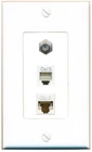 1 PORT Coax Cable TV CAT6 RJ45 Ethernet Phone Coupler Jack Wall Plate Flat Solid