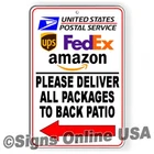 Deliver All Packages To Back Patio Arrow Left Metal Sign Or Decal 6 SIZES SI356