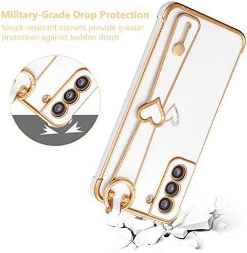 Designed for Samsung Galaxy S21 5G Case with Wristband,Plating Edge Love Hearts Pattern Hand Strap Finger Holder Kickstand Case,Soft Shockproof Cover for Girls Women,Black Samsung Galaxy S21 Case: Only designed for Samsung Galaxy S21 5G,please double-check your phone model before purchasing,Simple Love WristBand Design: We specially designed an adjustable wristband for this Simple Love Wristband Galaxy S21 case, which effectively prevents loss and is easy to carry. It is the essential device for freeing hands. Wide application, can be used as kickstand which is suitable for the job,fitness,watching video,reading and other scenarios,Luxury Plating Edge: The bumper edge using plating technology,to prevent the mobile phone case discoloration,fading,make the case durable;Soft TPU material provides a light and comfortable use experience,Full Protection: Upgrade 4 Raised bezel plated edges prevent your camera and screen from scratches and dirt,making your phone absolutely scratch resistant.Easy access to all controls and features;Perfect cut to fit speaker, camera and other ports,Perfect Gift: The combination of electroplating technology and simple love patterns makes your Galaxy S21 case more fashionable and attractive, which is perfect for Christmas,New Year and other holiday gifts for friends,daughters and wives