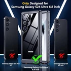 Designed for Samsung Galaxy S24 Ultra Case Waterproof,Built-in [ Screen + Camera Lens Protector][IP68 Underwater] Full Protection Heavy Duty Shockproof Anti-Scratched Phone Case,Black [Certified 10FT Military Drop Protection] Only designed for Samsung Galaxy S24 Ultra Case 6.8 Inch (Not for Samsung Galaxy S24 6.2 Inch /S24 Plus 6.7 Inch ), 4 anti-collision structure corners and 360° all-around powerful impact airbags disperses 99% impact force. It also can be dropped 4500+ times from 10 feet without damage, guaranteed with [MIL-STD-810G] standard, effectively protects your phone from drops, bumps, tumbles and scratches.,[IP68 Certified Waterproof] SPIDERCASE waterproof case is specifically designed for the Galaxy S24 Ultra and is IP68 Waterproof Certified. It can be submerged up to 6.6'/2m for 30 minutes, making it perfect for outdoor activities like swimming, snorkeling, and surfing. We recommend conducting a waterproof test before fully immersing the case in water with your phone.,[HD Built-in Screen + Camera Protector]Designed for S24 ultra waterproof case specially with built in screen protector. 0.33mm sreen protector maintains 99.99% response sensitivity and never scratches. Specially designed black camera lens protector offers enough protection for the phone camera from highly impact and brings pristine beauty to every photo. The elaborate design of 2.5 mm lips over the camera, 1.5 mm bezels around the screen on the back provides extra and comprehensive protection.,[Clear Sound Quality] SPIDERCASE Samsung Galaxy S24 ultra case provide full body protection without compromising clear sound quality. With its unique sound design, this case ensures a better calling volume and maintains a clear audio experience.,[Easy Installation & Lifetime Support] Please remove all screen and lens protectors before installing the case to ensure proper fitting. We also recommend testing the case's waterproof capability before fully immersing it in water with your phone. In case of any issues or concerns, SPIDERCASE offers lifetime support and is readily available to assist you via the Amazon Message Center.